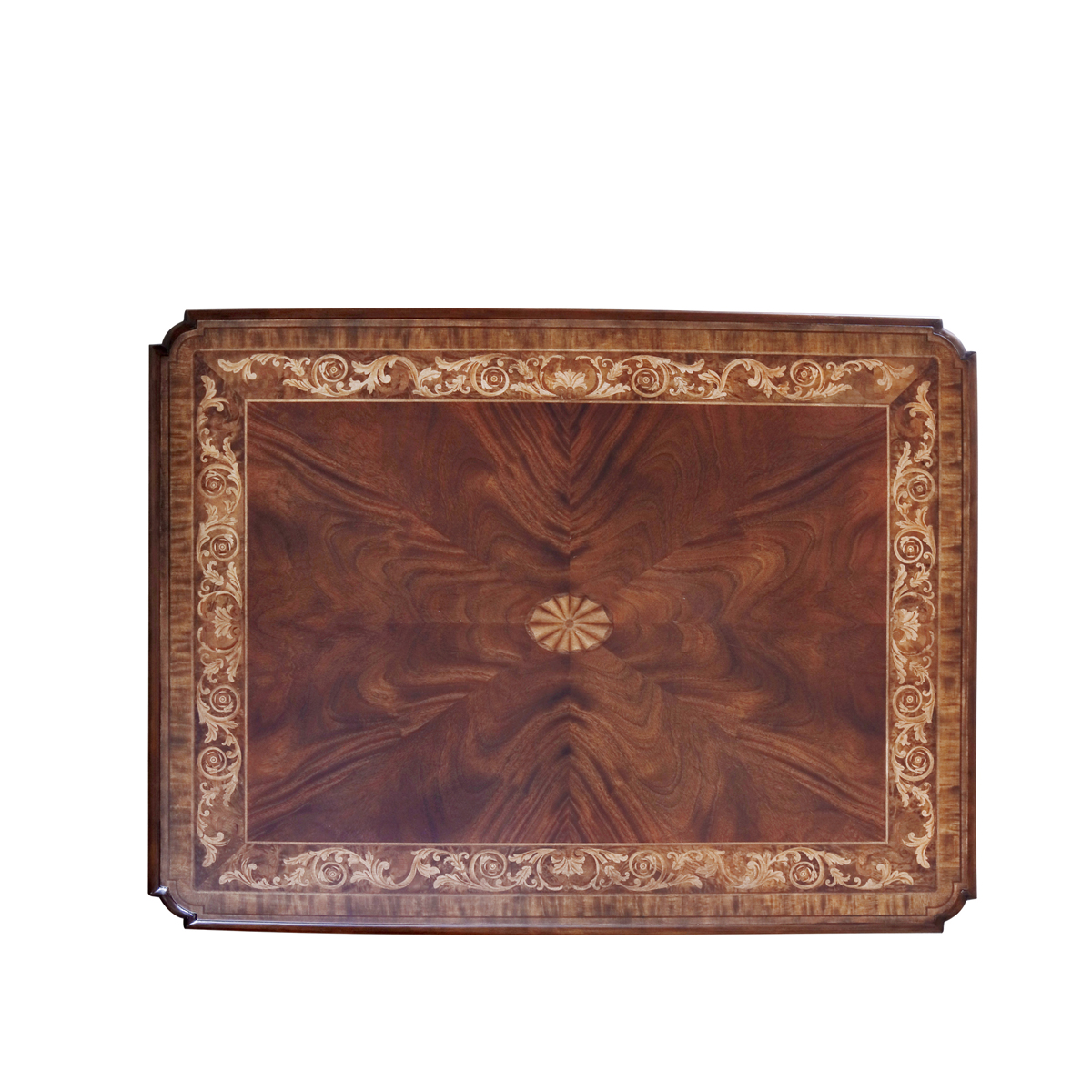 * 以現位于美國白宮中象征友誼和權力的堅毅桌(英語:Resolute desk)為設計意念, 以實木拼貼和雕刻工藝,將具有紀念意義的歷史時刻融入其中,實用性的功能設計更是把藝術和生活完美結合, 是宮廷系列華盛頓美式餐桌的特色。