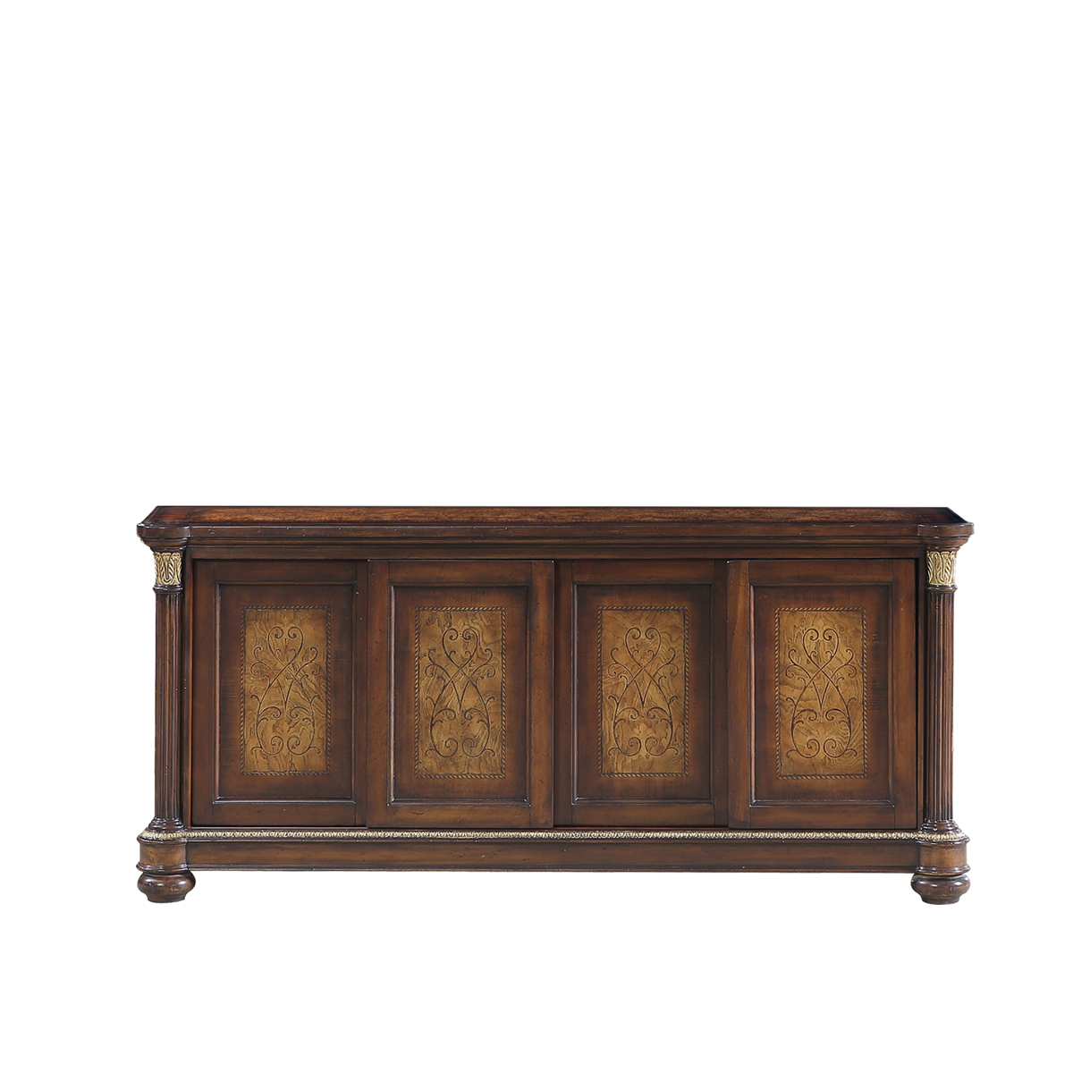 * 以意大利的宮廷家具和羅馬的古建筑為元素,使用華麗莊嚴的 Corinthian Order(科林斯式)羅馬雕刻柱與描金工藝結合;配以阿坎賽斯葉狀雕刻與精致優美的手工拼花,精彩展現了意式家具奢華絢麗而又極富藝術人文氣息的迷人魅力。