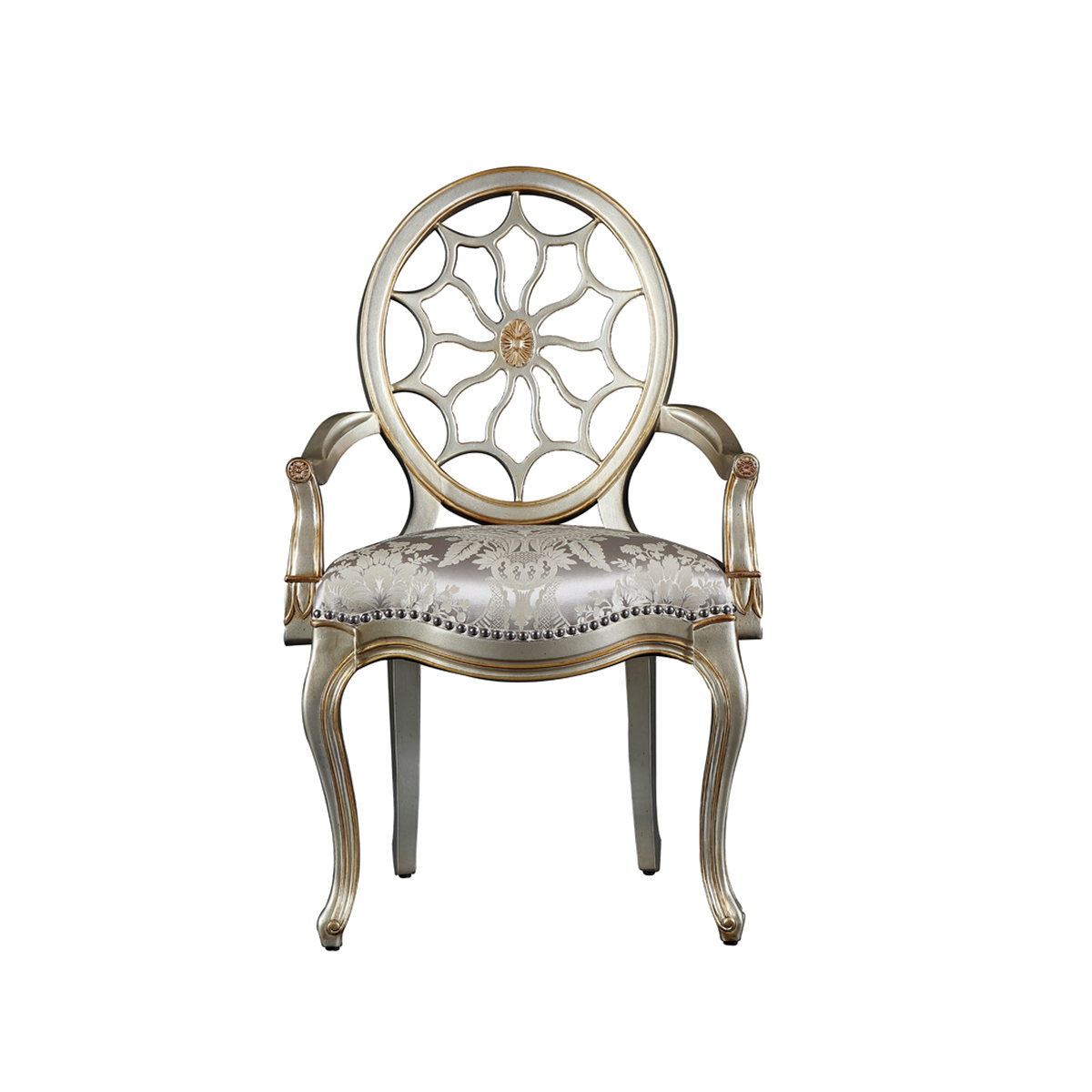 * 參考喬治三世時期的古董造型設計,使用輪子構造椅背和安妮王后腿,配以精致的手工雕刻細節和涂金工藝、布藝面料和厚實柔軟的填充物,是豪華系列凡爾賽玫瑰法式扶手椅的特色。