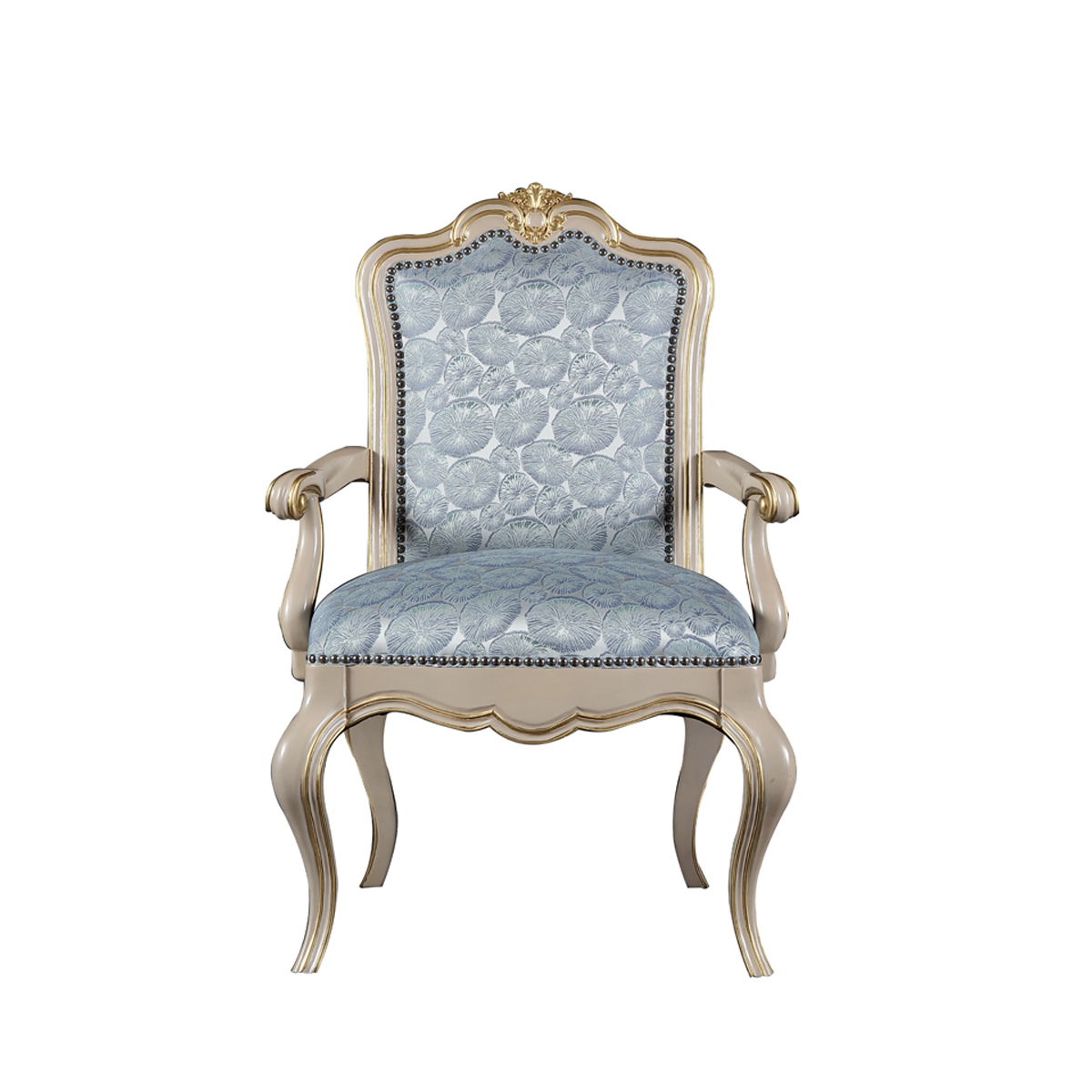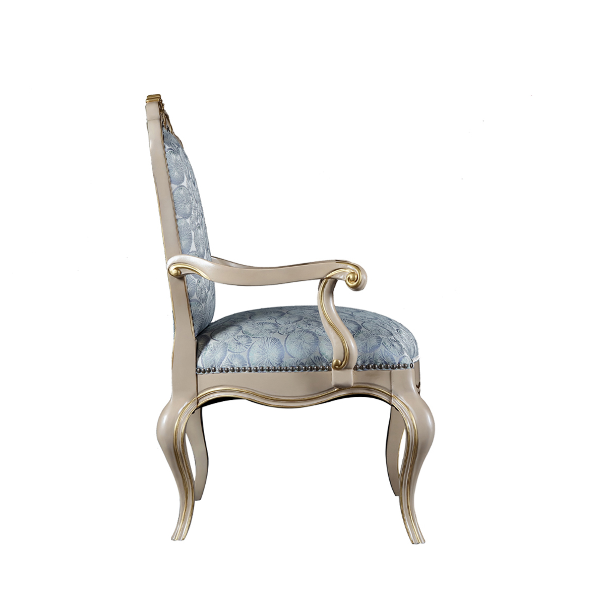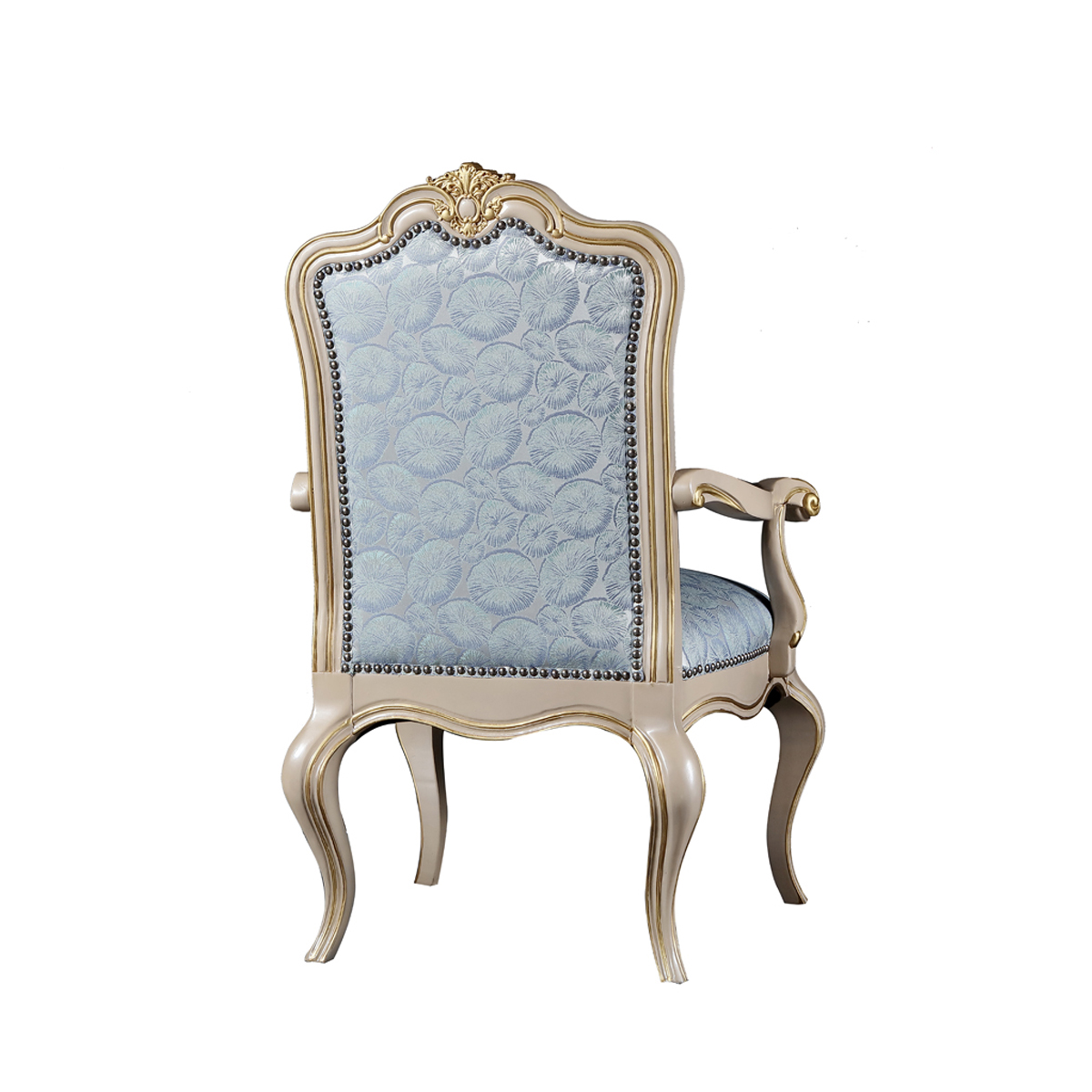 優雅的琴背造型,茛苕紋描金雕刻,經典的法式“S”型彎腿,如天鵝頎長的脖頸一樣優美曼麗,時尚鉚釘裝飾為休閑椅氣質加持,將輕奢注入人文細節。