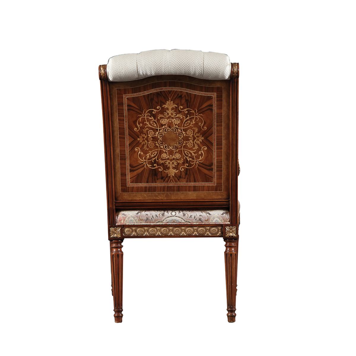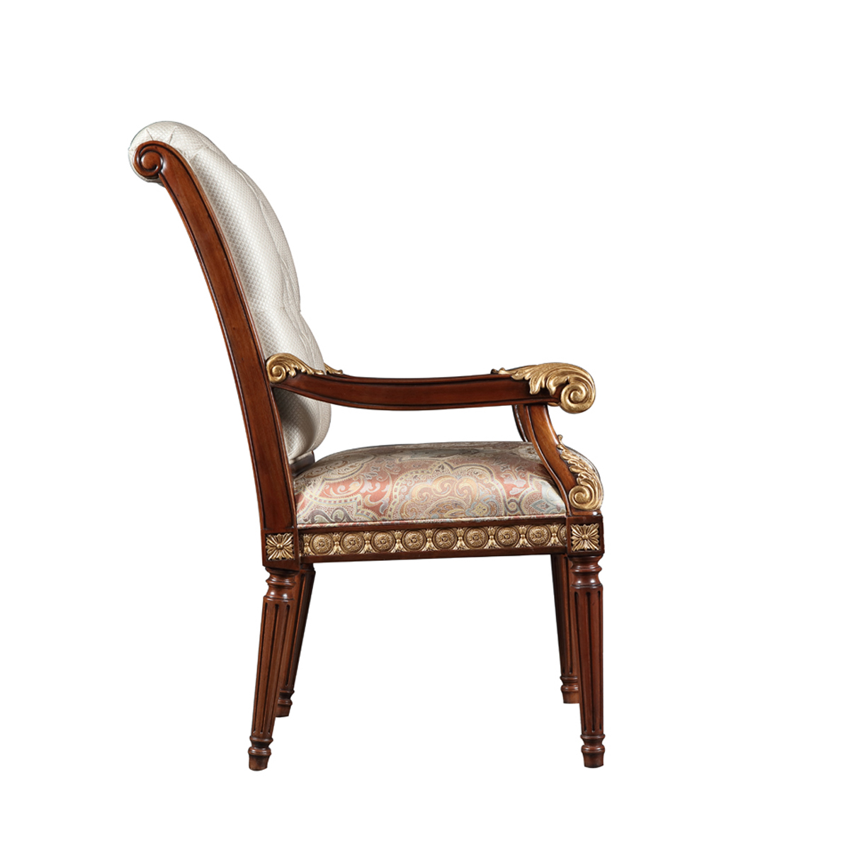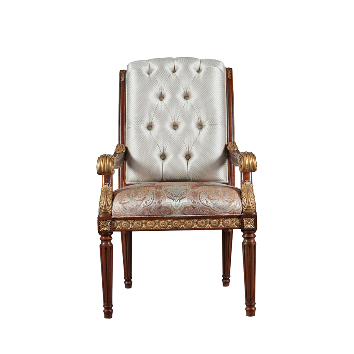 溫莎堡扶手椅溫莎堡從千年古堡魅力中汲取設計靈感,精選皇室家具御用的桃花心木,椅背花形手工刺繡飾面,扶手、椅邊結合細膩的卷葉雕刻,以小窺大聚焦非凡品味,演繹歐美傳世經典, 重現18世紀的皇室生活。