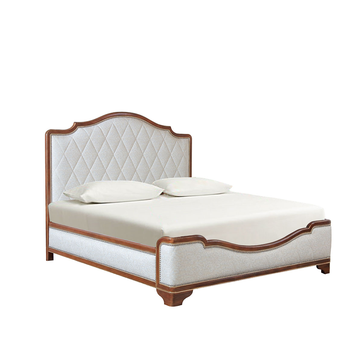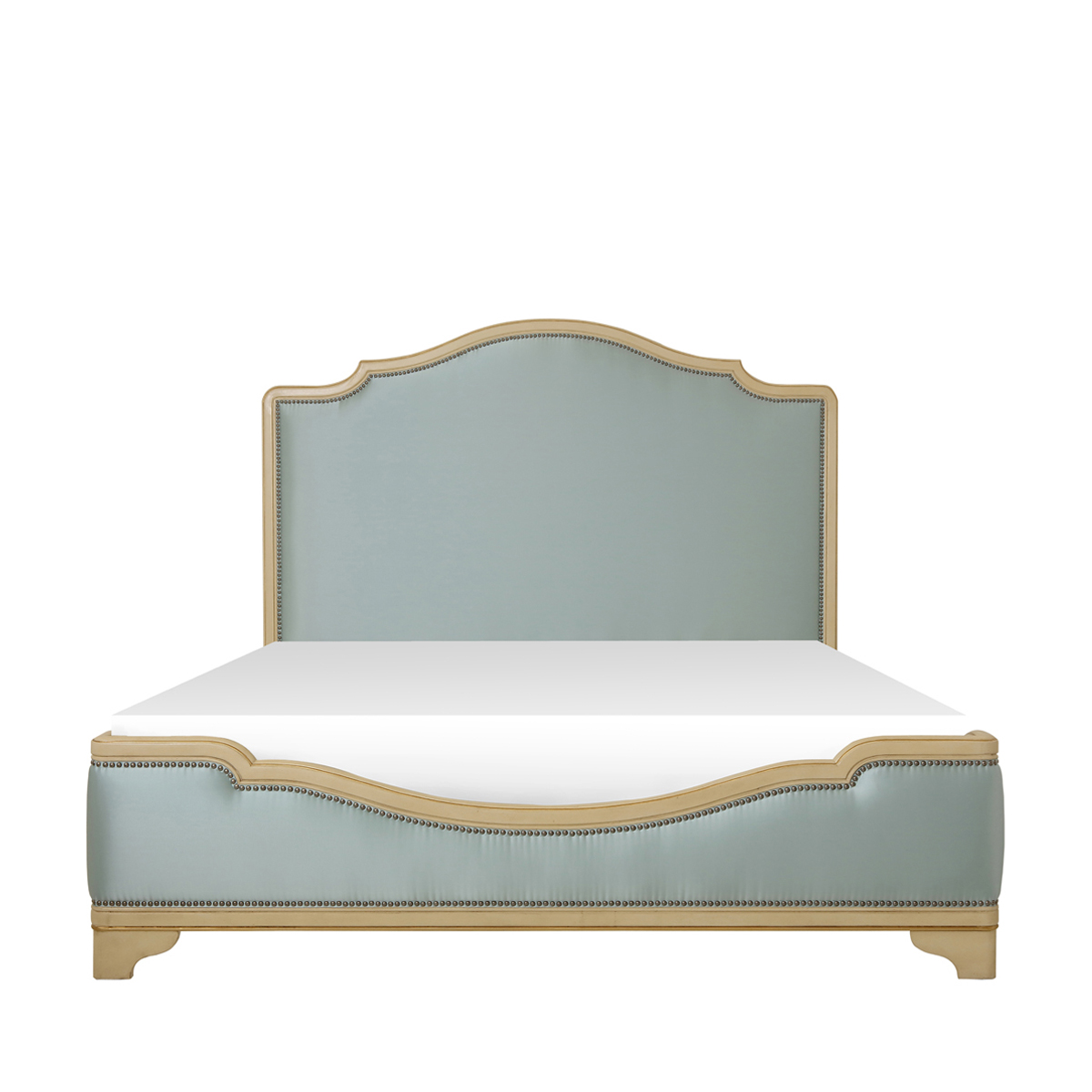 維羅納湖畔的自然清新感喚醒人們的清晨,召喚時(shí)尚與優(yōu)雅。這抹清新淡雅的浪漫色彩源自維羅納美麗的自然風(fēng)光,給人放松,愜意的心情。床頭床刀緊密有序的仿古銅釘增強(qiáng)時(shí)尚氣息,注重細(xì)節(jié)美。