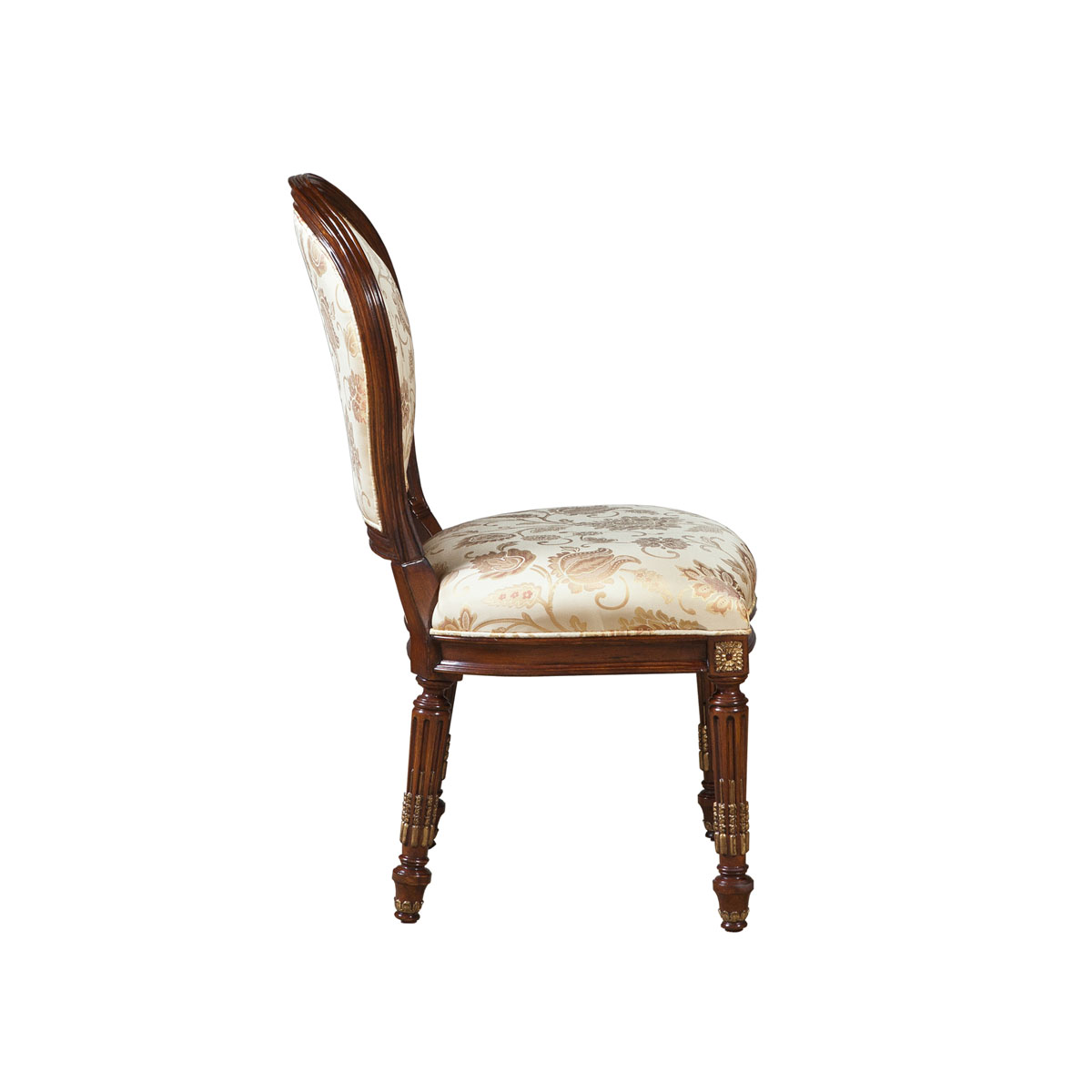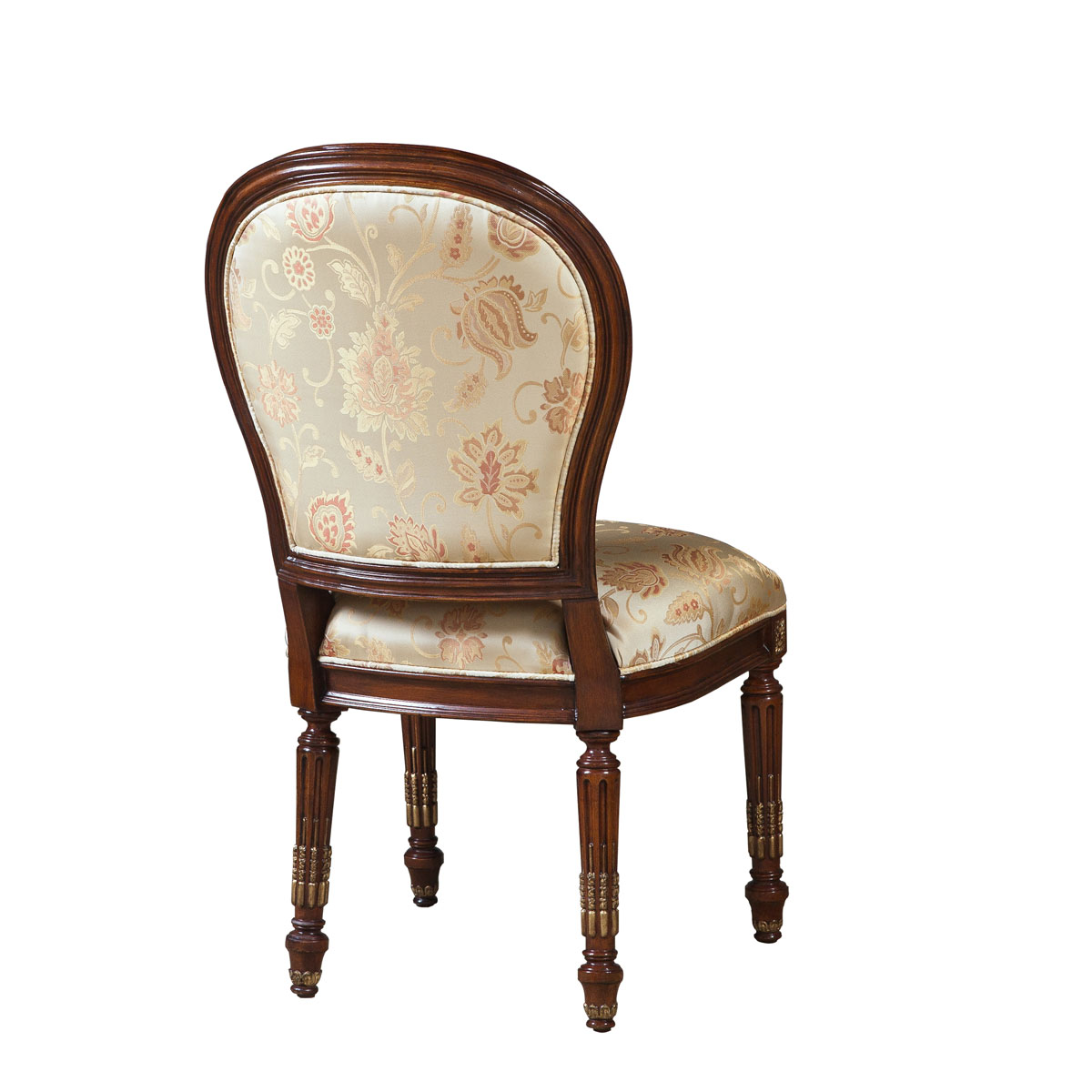 * 參考路易十六時期的古董造型設計,使用小提琴構造椅背和路易十六時期的建筑柱雕刻柱,配以精致的手工雕刻細節和涂金工藝、舒適的布藝面料和厚實柔軟的填充物,是豪華系列凡爾賽玫瑰法式單椅的特色。