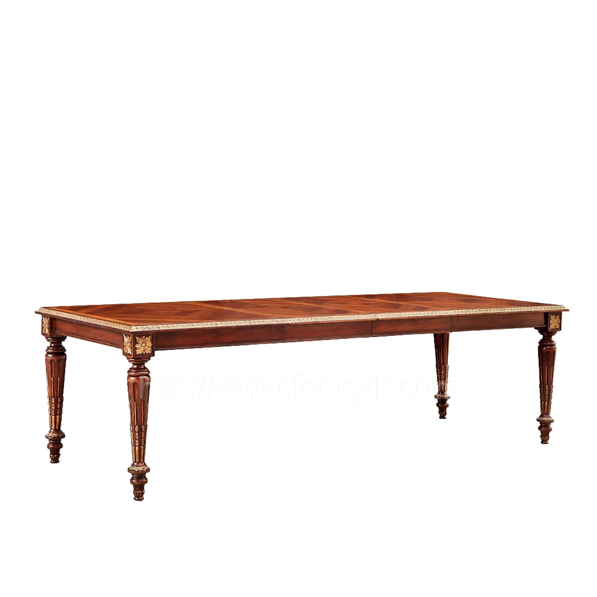 * 為表現(xiàn)法國路易時(shí)期的莊嚴(yán)和浪漫,以法國凡爾賽宮為設(shè)計(jì)元素。使用歌頌路易十四時(shí)期的太陽花雕刻,顯示其王權(quán)穩(wěn)固地位的錐形腿腳設(shè)計(jì);配以鉆石圖案木皮貼面和貼金工藝,完美演繹了法式宮廷家具的奢華尊貴。