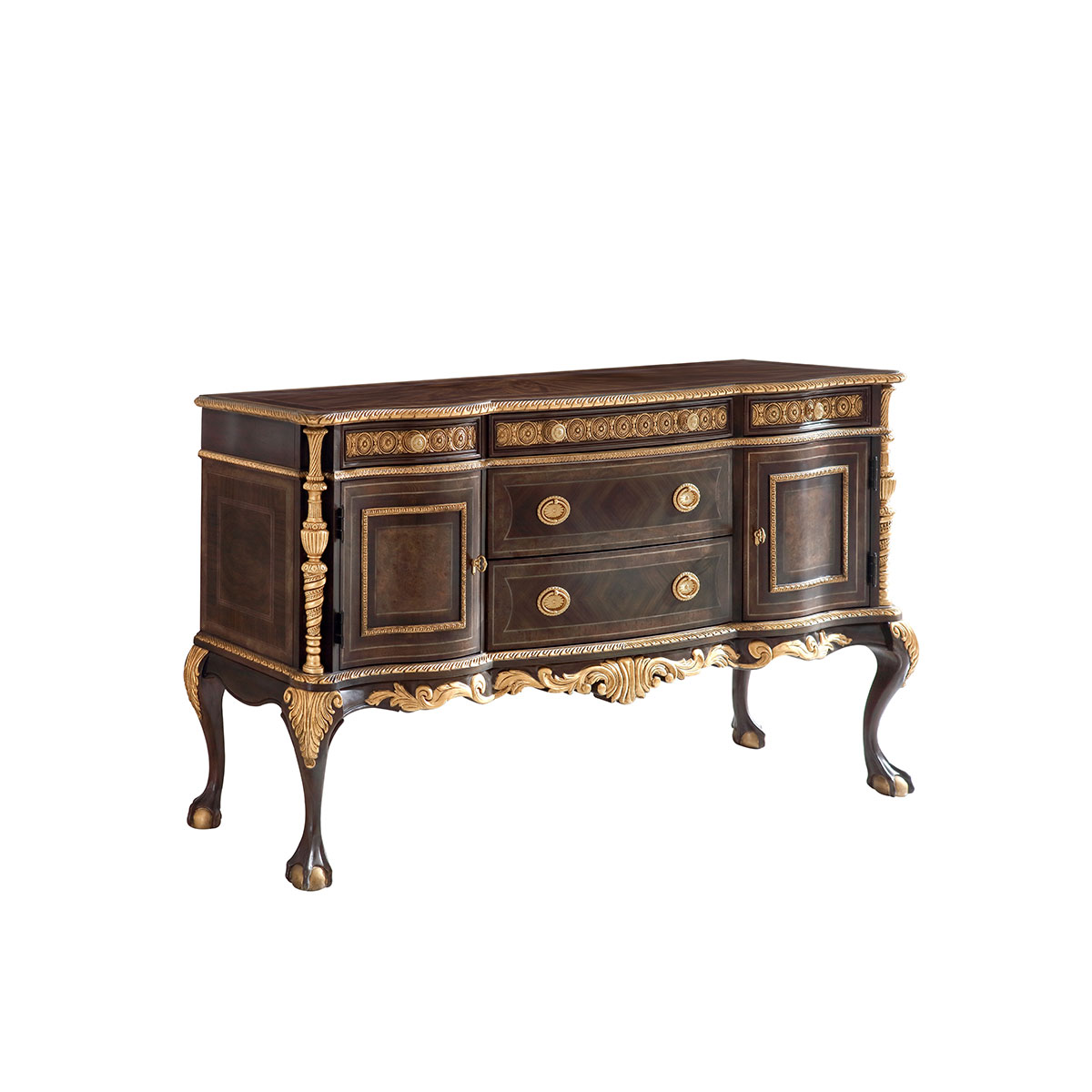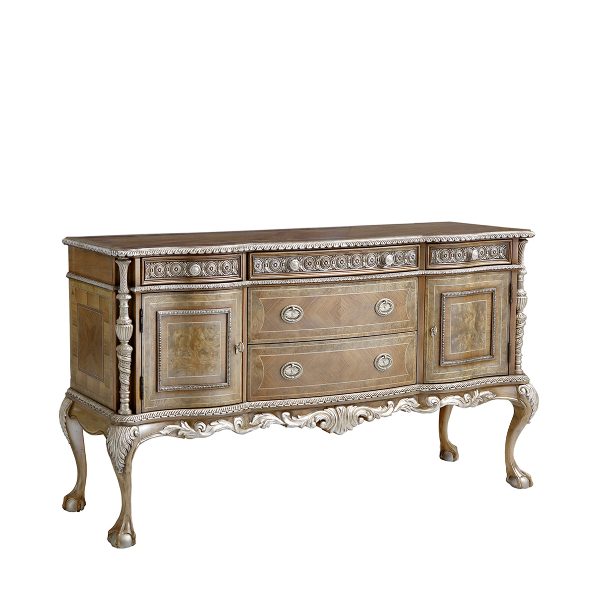 桃花心木+環保人造板+粟樹瘤、酸枝木皮、裝飾木皮、楓木木皮、黑胡桃木皮、山香果樹瘤等實木木皮貼面
