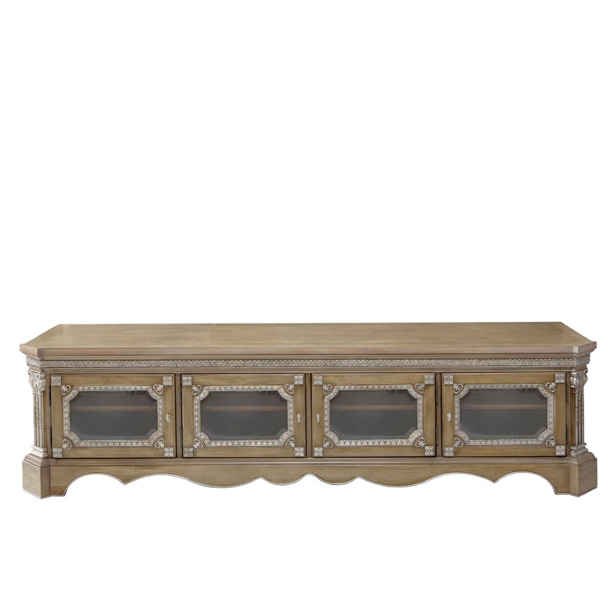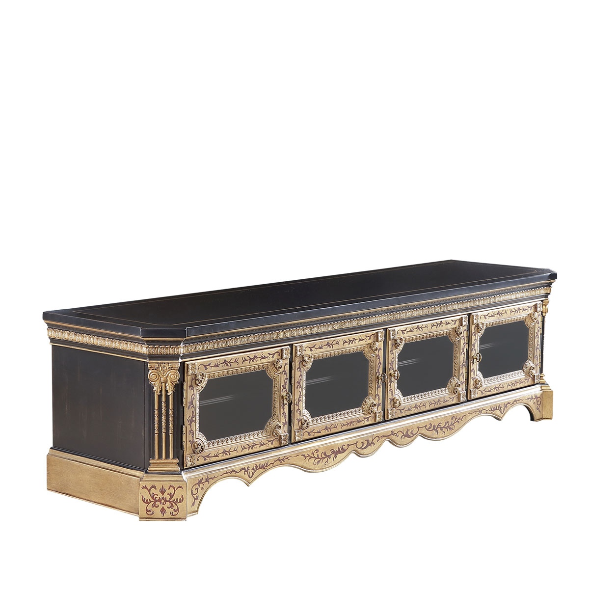 * 手工雕刻的工藝細節結實的連接技術18道以上的多步驟油漆工藝 * 四個實木框玻璃門,門內各有一塊可調層板; * 腳底部裝有可調腳釘