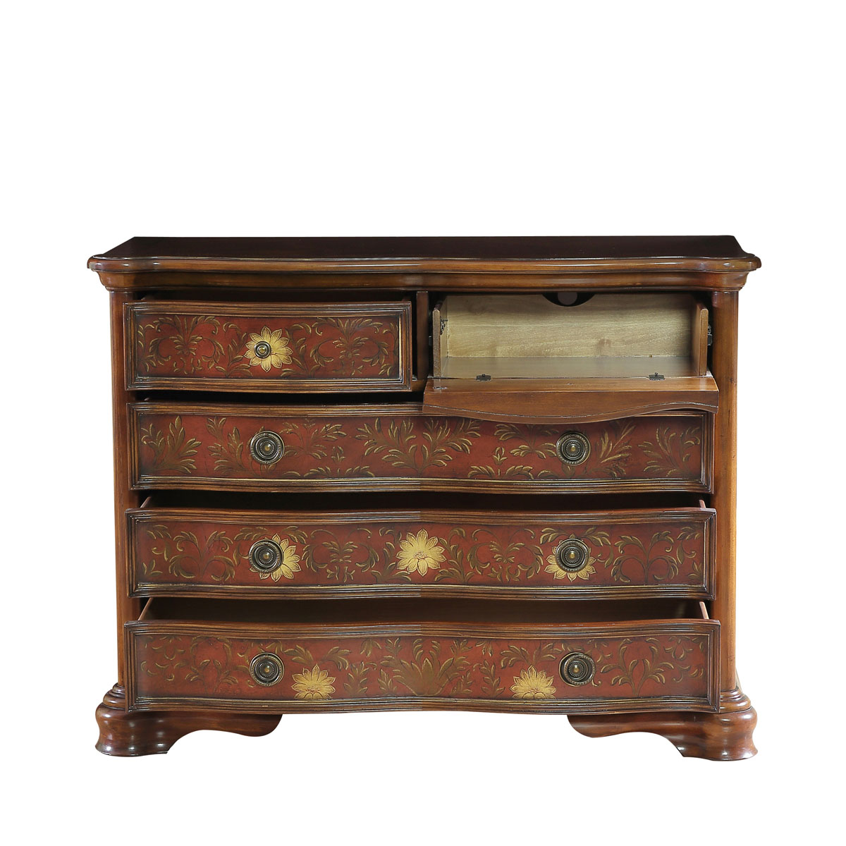 * 可作為臥室的梳妝臺、客廳的玄關或休息室的裝飾家具; * 五個大不同的儲物抽斗; * 右上抽斗可翻下抽斗面(兩側裝有消聲鐵滑軌),可放DVD電器, 背板有通線孔; * 腳底部裝有可調腳釘;