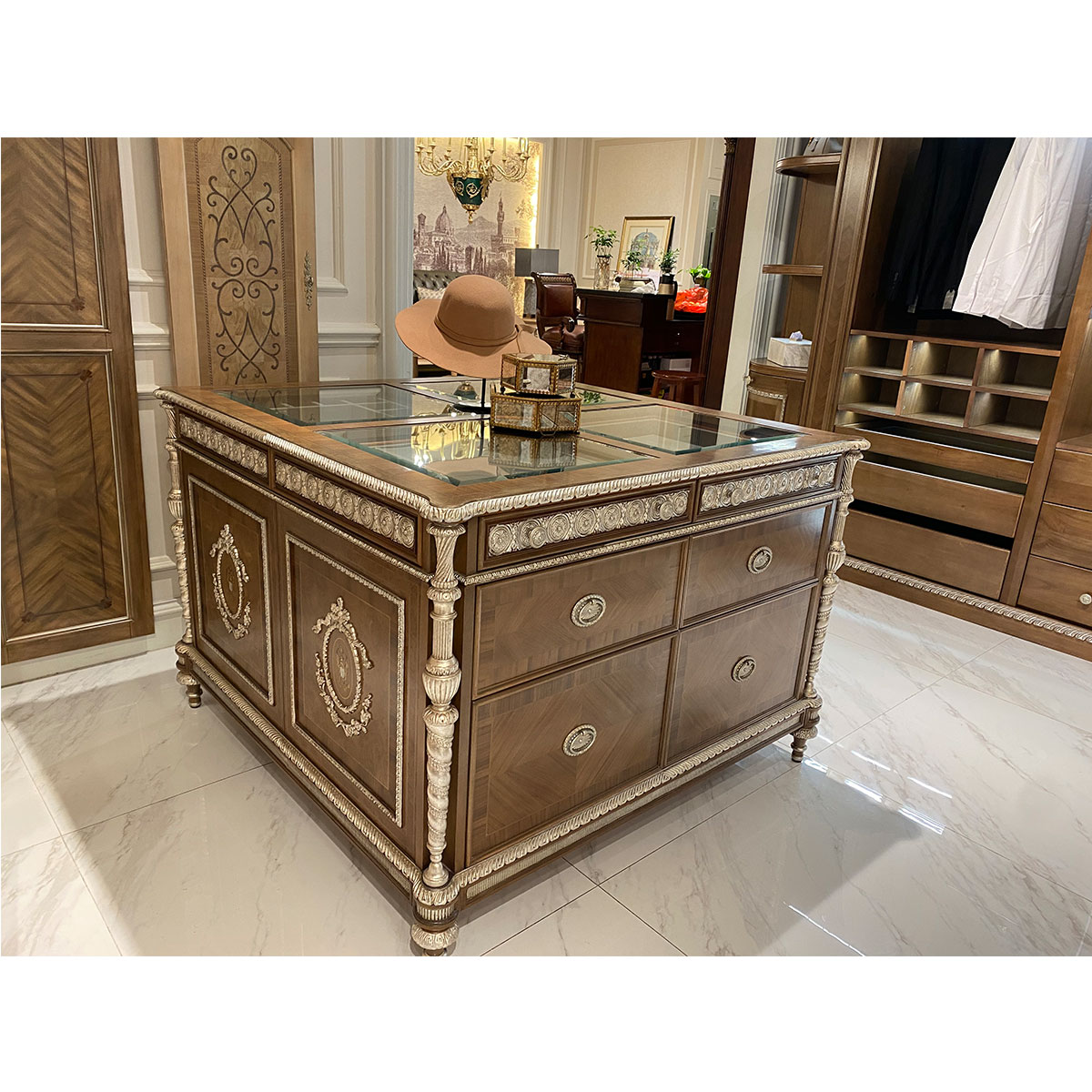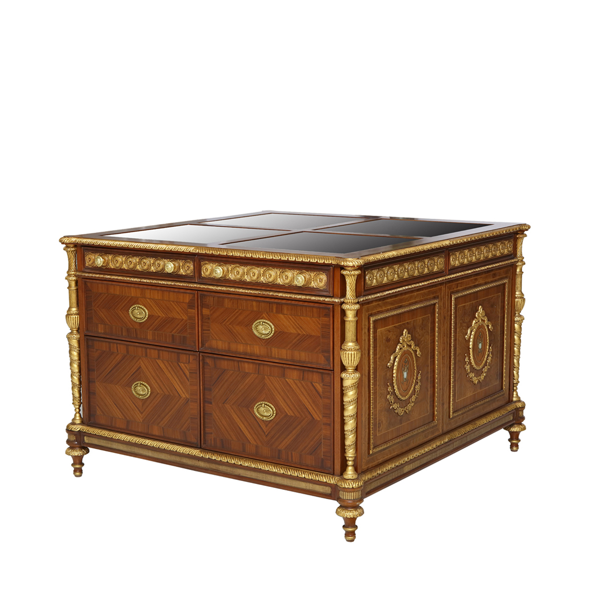 桃花心木+水青岡木+環保人造板+粟樹瘤、酸枝木皮、裝飾木皮、楓木木皮、黑胡桃木皮、山香果樹瘤等木皮貼面