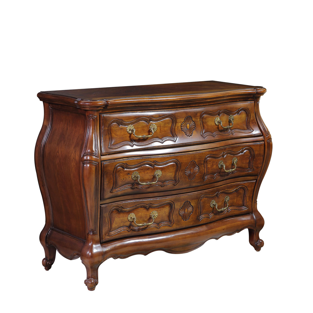 * 手工雕刻的花圃、藤蔓、阿坎瑟斯卷葉圖案和彎腳設計 * 結實的連接技術 * 三個儲物抽斗,其底部采用經典硬木實木滑軌設計