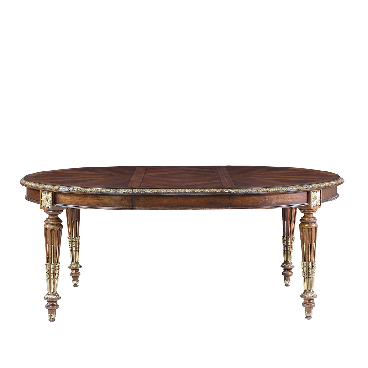 * 為表現法國路易時期的莊嚴和浪漫,以法國凡爾賽宮為設計元素。使用歌頌路易十四時期的太陽花雕刻,顯示其王權穩固地位的錐形腿腳設計;配以鉆石圖案木皮貼面、可調節的伸板設計和貼金工藝,完美演繹了法式宮廷家具的奢華尊貴。