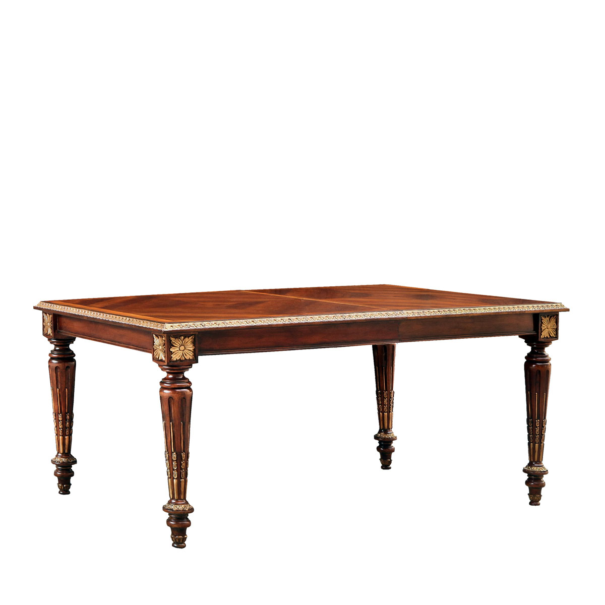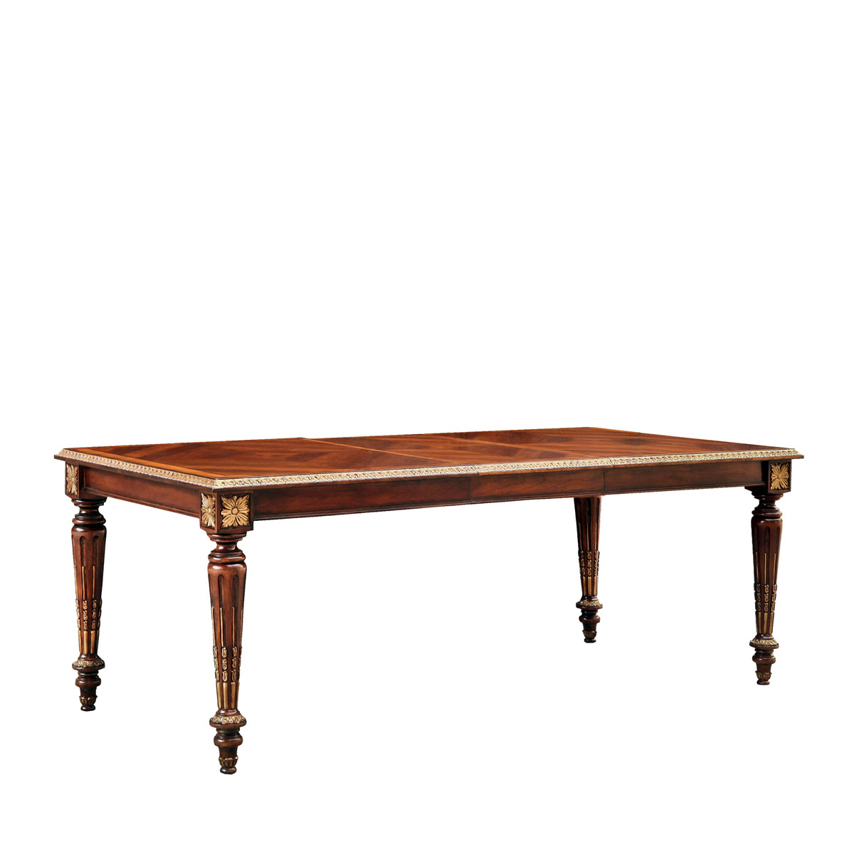 * 為表現法國路易時期的莊嚴和浪漫,以法國凡爾賽宮為設計元素。使用歌頌路易十四時期的太陽花雕刻,顯示其王權穩固地位的錐形腿腳設計;配以鉆石圖案木皮貼面、可調節的伸板設計和貼金工藝,完美演繹了法式宮廷家具的奢華尊貴。