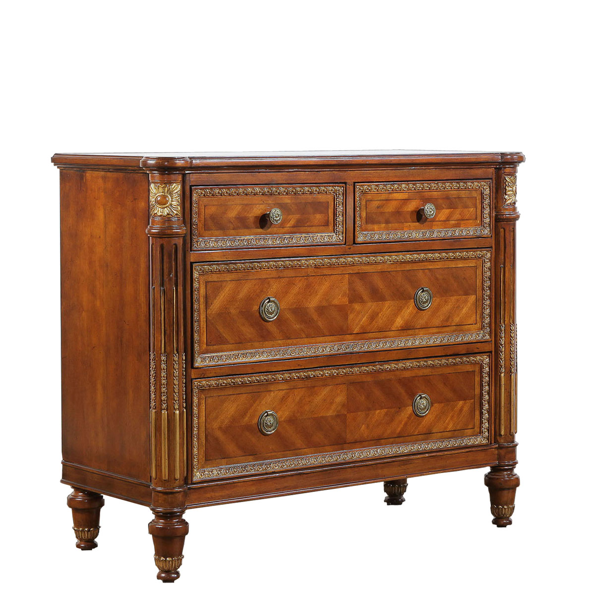 * 四個儲物抽斗,底部采用硬木實木滑軌; * 腳部裝有可調整腳釘;