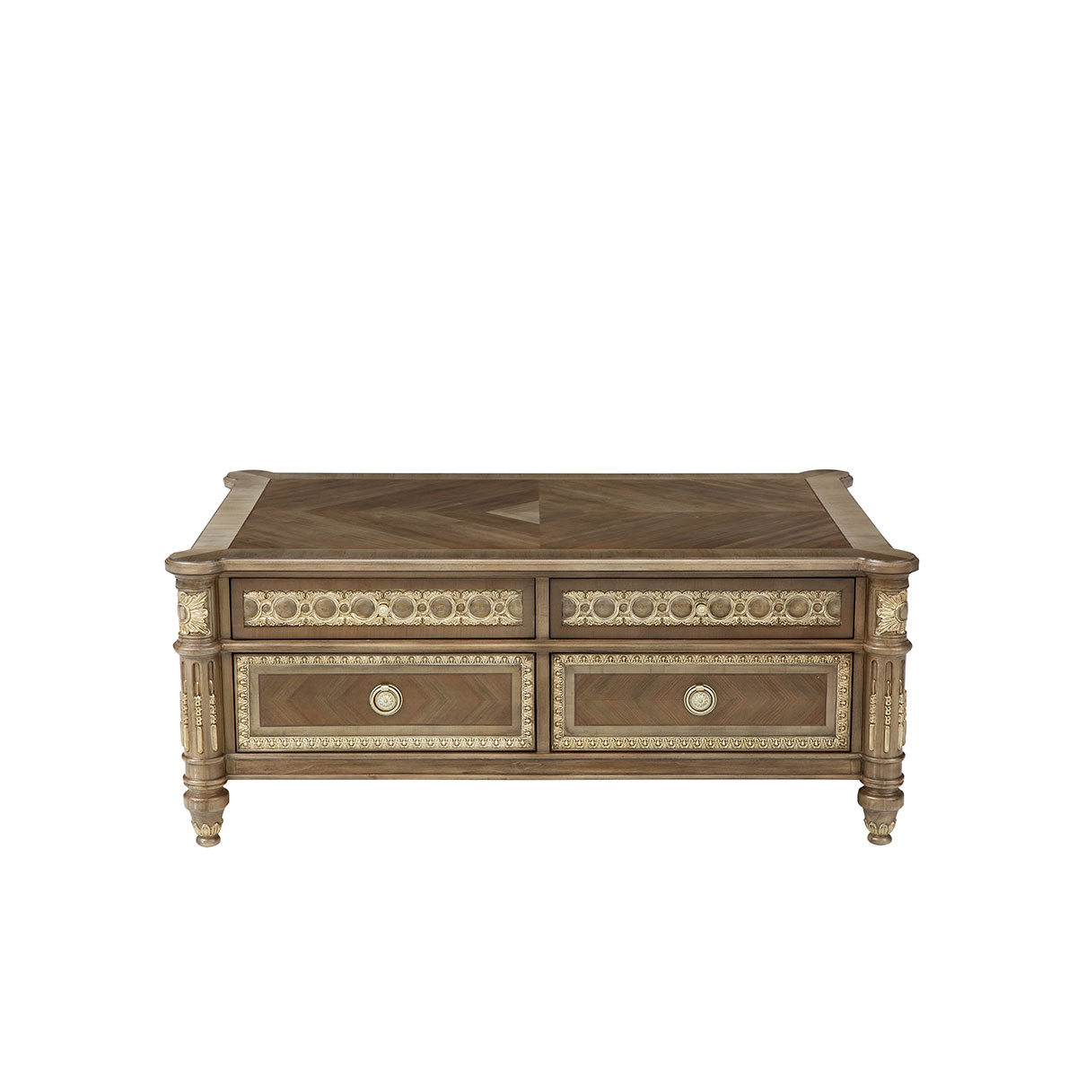 * 為表現(xiàn)法國路易時(shí)期的莊嚴(yán)和浪漫,以法國凡爾賽宮為設(shè)計(jì)元素。使用歌頌路易十四時(shí)期的太陽花雕刻,顯示其王權(quán)穩(wěn)固地位的錐形腿腳設(shè)計(jì);配以鉆石圖案木皮貼面和貼金工藝,完美演繹了法式宮廷家具的奢華尊貴。