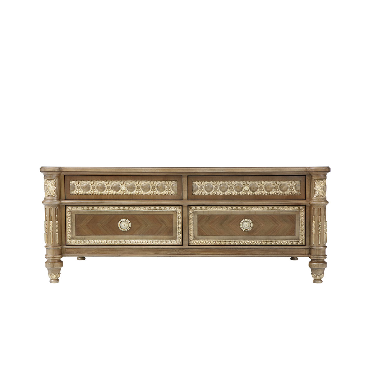 • 手工雕刻的工藝細(xì)節(jié) • 結(jié)實(shí)的連接技術(shù) • 4個(gè)為儲物抽斗,而在其底部采用經(jīng)典硬木實(shí)木滑軌設(shè)計(jì)