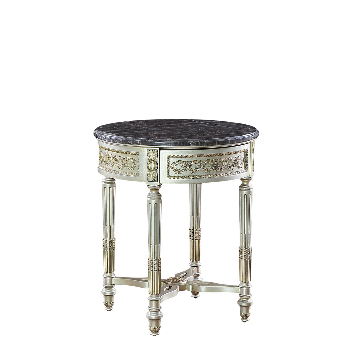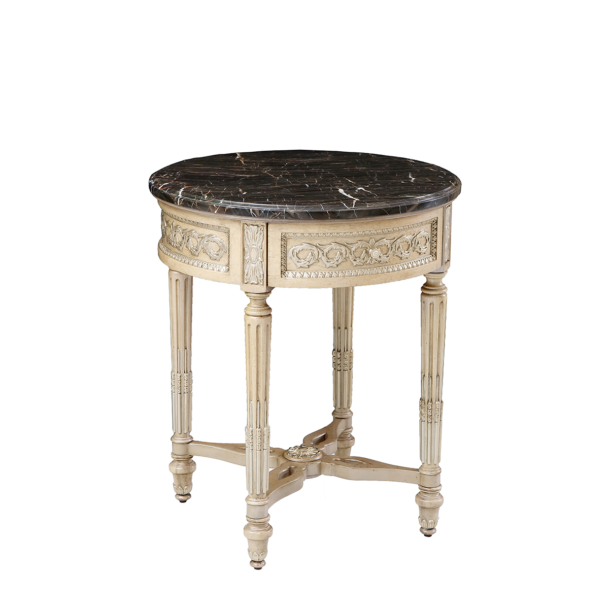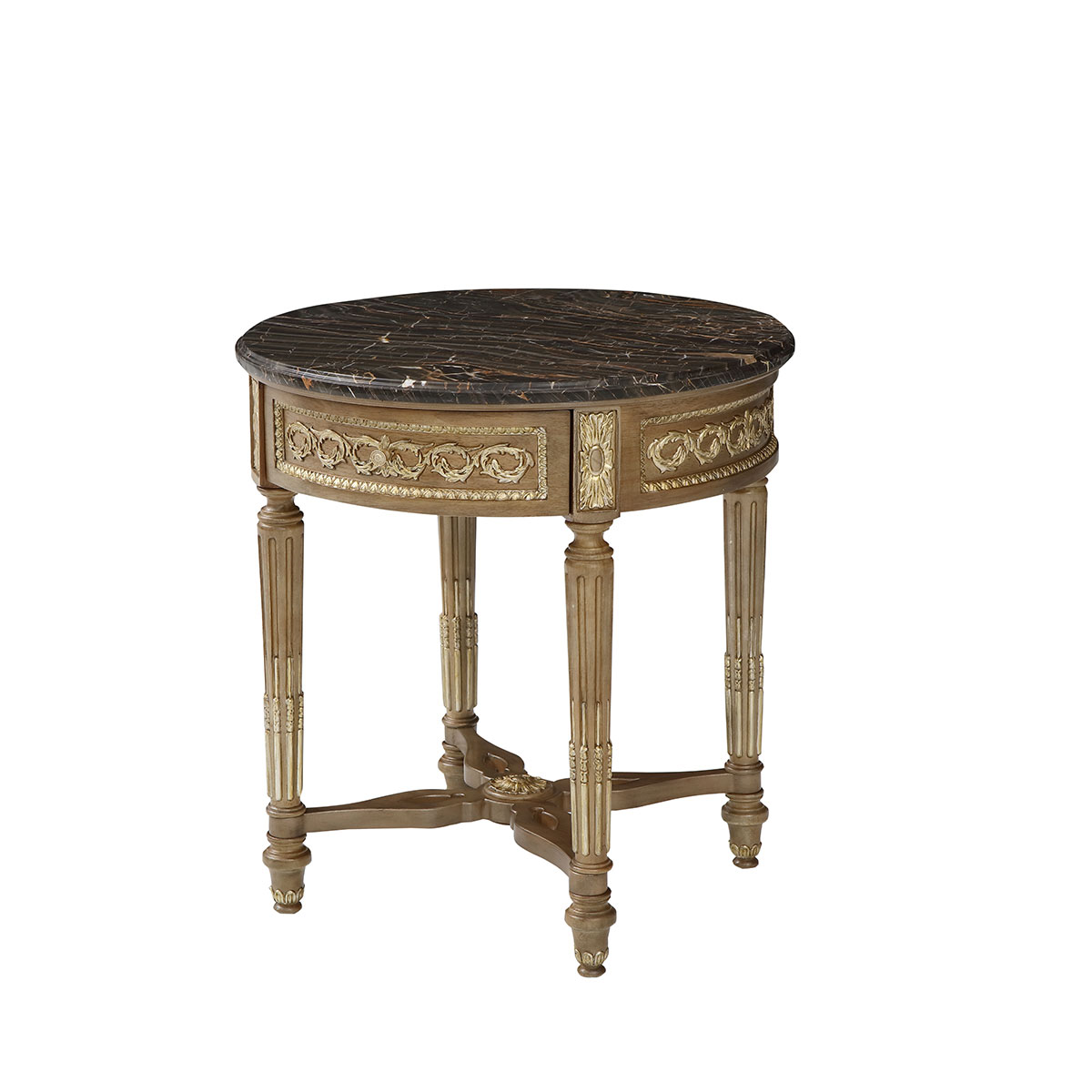 * 為表現(xiàn)法國(guó)路易時(shí)期的莊嚴(yán)和浪漫,以法國(guó)凡爾賽宮為設(shè)計(jì)元素。使用歌頌路易十四時(shí)期的太陽(yáng)花連環(huán)雕刻,顯示其王權(quán)穩(wěn)固地位的錐形腿腳設(shè)計(jì);配以哥特式建筑中的大圓窗骨架設(shè)計(jì)、珍稀大理石臺(tái)面、建筑柱雕刻與絢麗的貼金工藝,完美演繹了法式宮廷家具的奢華尊貴。