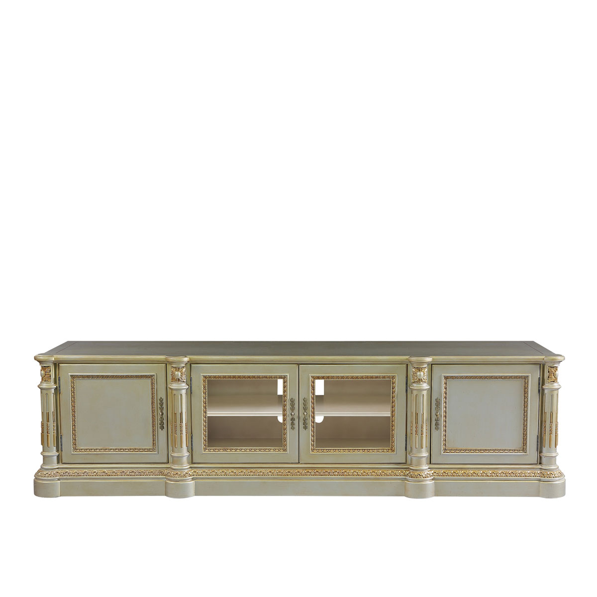 * 手工雕刻的工藝細節,結實的連接技術; * 中間兩個儲物抽斗配有CD/DVD隔板,可CD/DVD更好的存放,其底部采用經典硬木實木滑軌設計; * 兩扇門內各有1塊可調層板;上部為開空設計,可在內放播放器等電子器材; * 腳底部裝有可調腳釘;