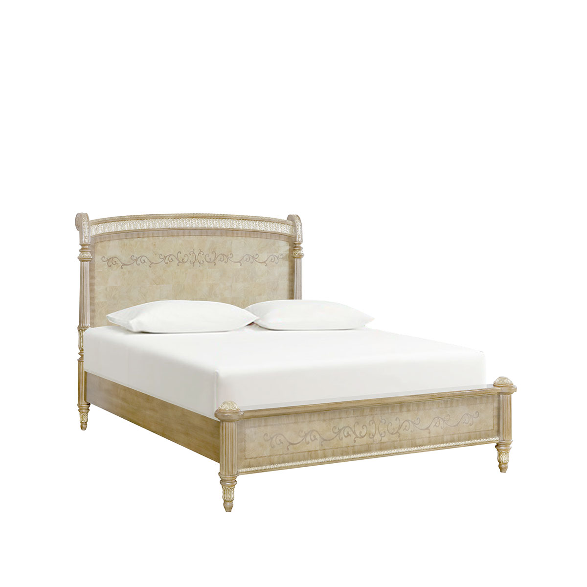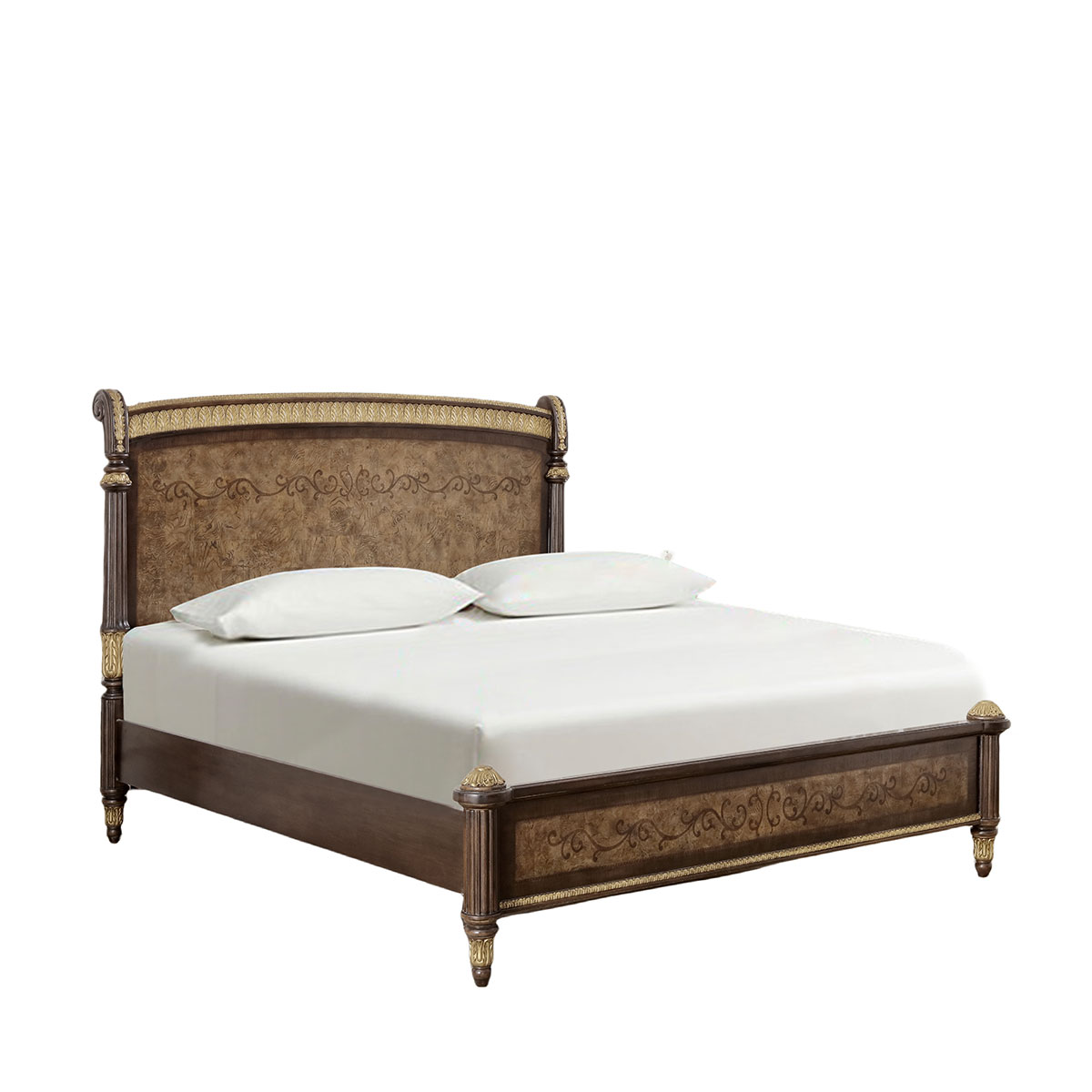 以19世紀的Wing Chair為設計靈感,使用Chesterfield Bed(切斯特菲爾德床)拉扣工藝設計與外露木框設計,頓感穩(wěn)重踏實,結(jié)合17世紀意大利帝國EMPIRE風格阿坎賽斯葉狀雕刻與實木薄片鑲嵌,奢華與藝術不期而遇,詮釋意式家具的奢華典雅及極富藝術人文氣息的迷人風采。
