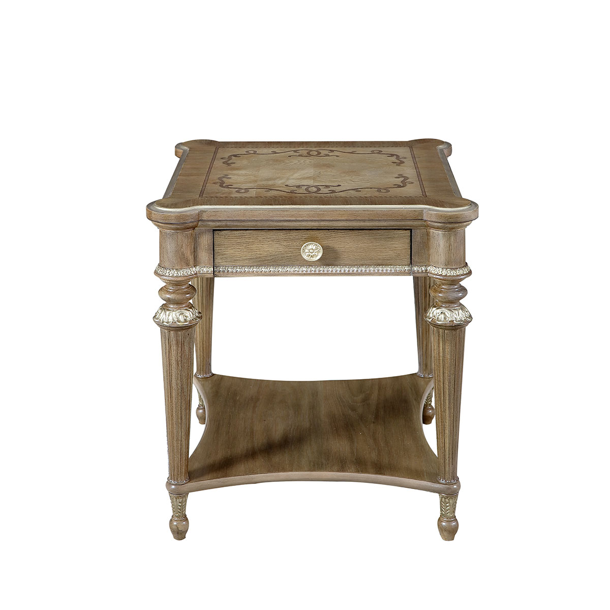 翡冷翠長方燈臺以直線為美的的羅馬柱塑造而成,家具表面的圖案使用名貴的白栓樹瘤,由工藝嫻熟的匠師純手工拼貼而成,象征勝利和榮耀的月桂紋路雕刻裝飾其中,使實用性和藝術性共存。