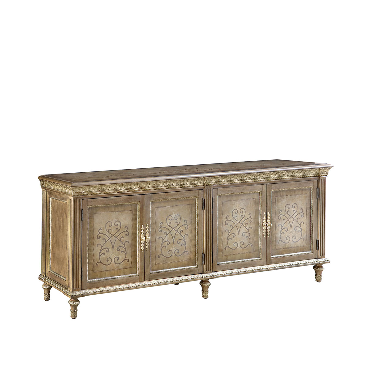 翡冷翠電視柜白栓樹瘤、橡木皮、楓木等多種木皮進(jìn)行手工拼花彰顯了古老手工技藝的迷人魅力,手工雕刻、木皮拼花都是華美的獨特樣式,傳承經(jīng)典,彰顯宮廷華麗。