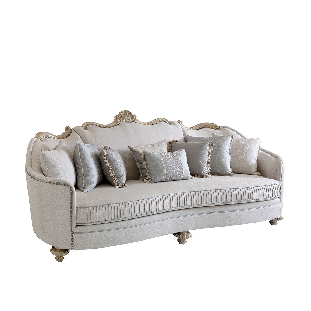 "* 坐墊和靠背包有豐厚的填充物; * 標配抱枕: 8個 * 提供多種面料可供選擇"