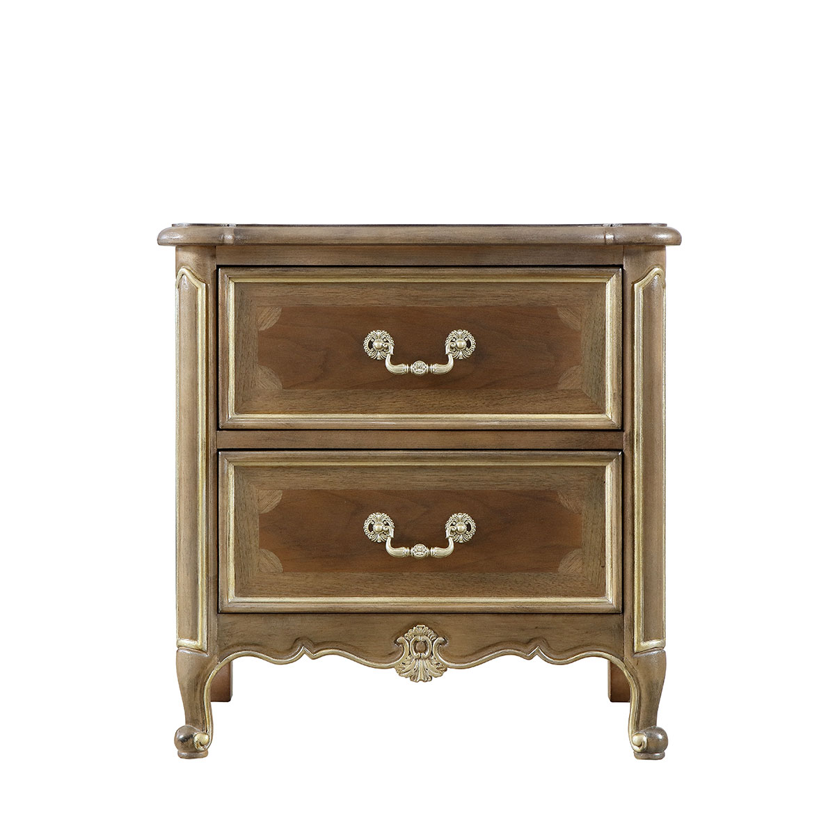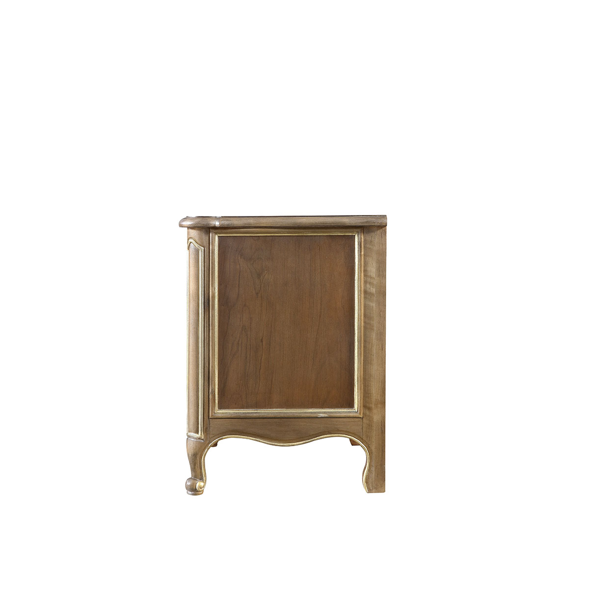 "* 手工拼花藤蔓效果,用多種上等木皮拼制而成 * 二個儲物斗,底部采用經(jīng)典的硬木實木滑軌; * 腳腳底部裝有可調腳釘;"