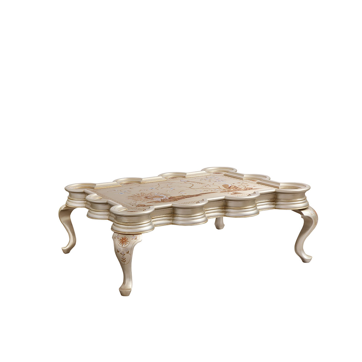 * 為表現(xiàn)英國皇室在中西方文化交流時期的重要地位,以英國溫莎堡為設計元素。使用高貴的孔雀彩繪主題和安妮女王時期的彎腿設計,彰顯了尊貴的古雅品味。搭配不規(guī)則的造型和極具中國情調(diào)的黑金色,經(jīng)典再現(xiàn)了18世紀英國皇室熱衷東方元素的家居文化潮流。