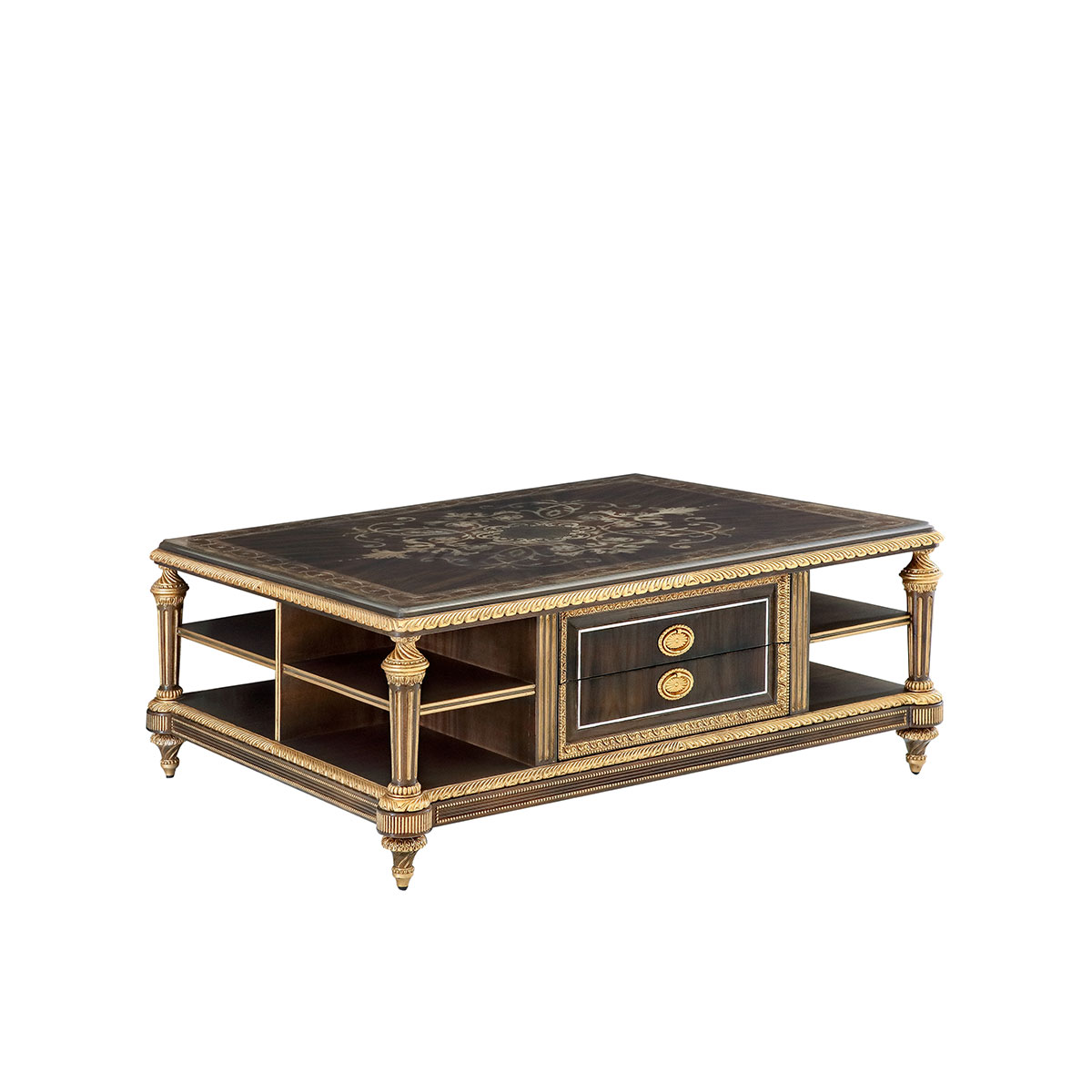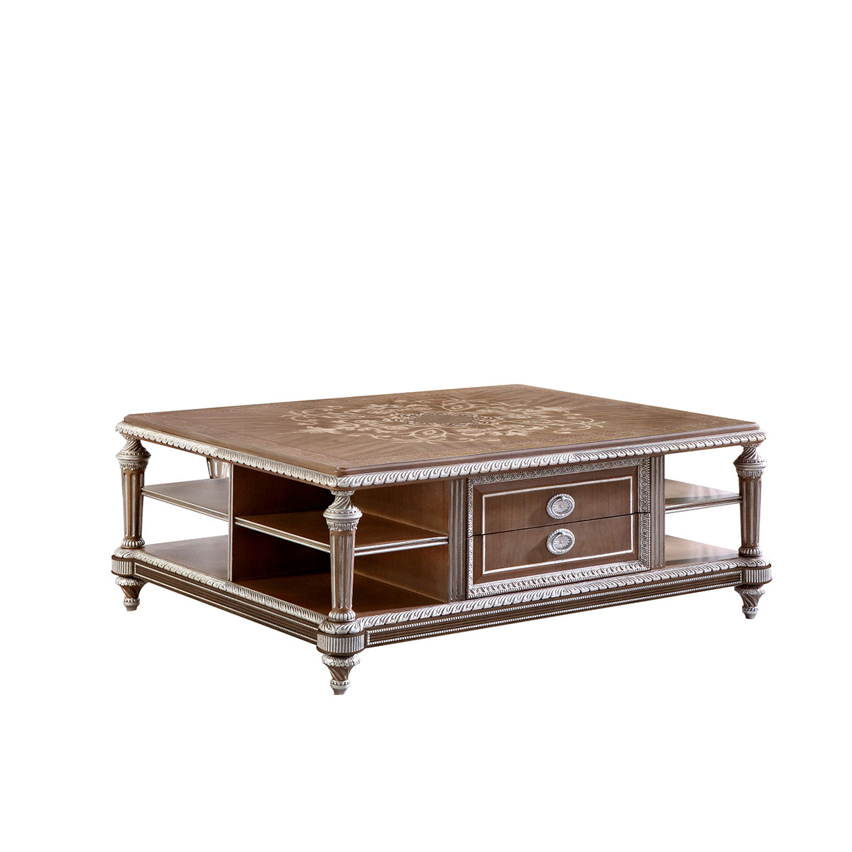 * 帶槽紋的錐形腿象征權力的堅不可摧,英國皇室家具御用的桃花心木飾以珍稀木皮彰顯傳世價值,綺麗華美的花朵雕刻與拼花圖案,則寄托了王室貴族對古典藝術的鐘愛。
