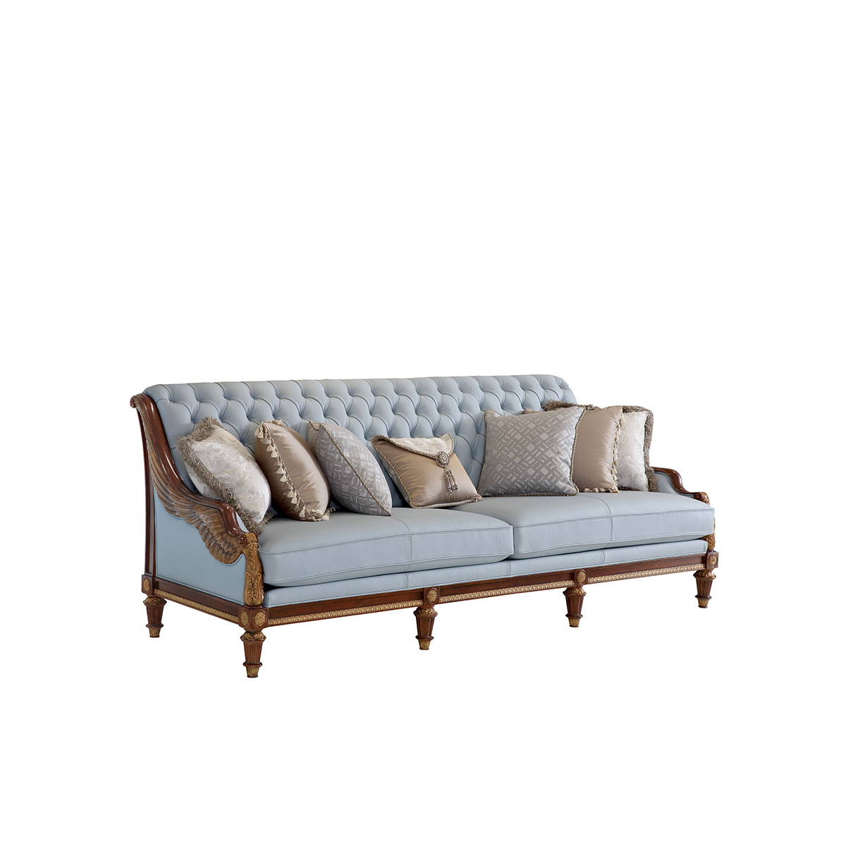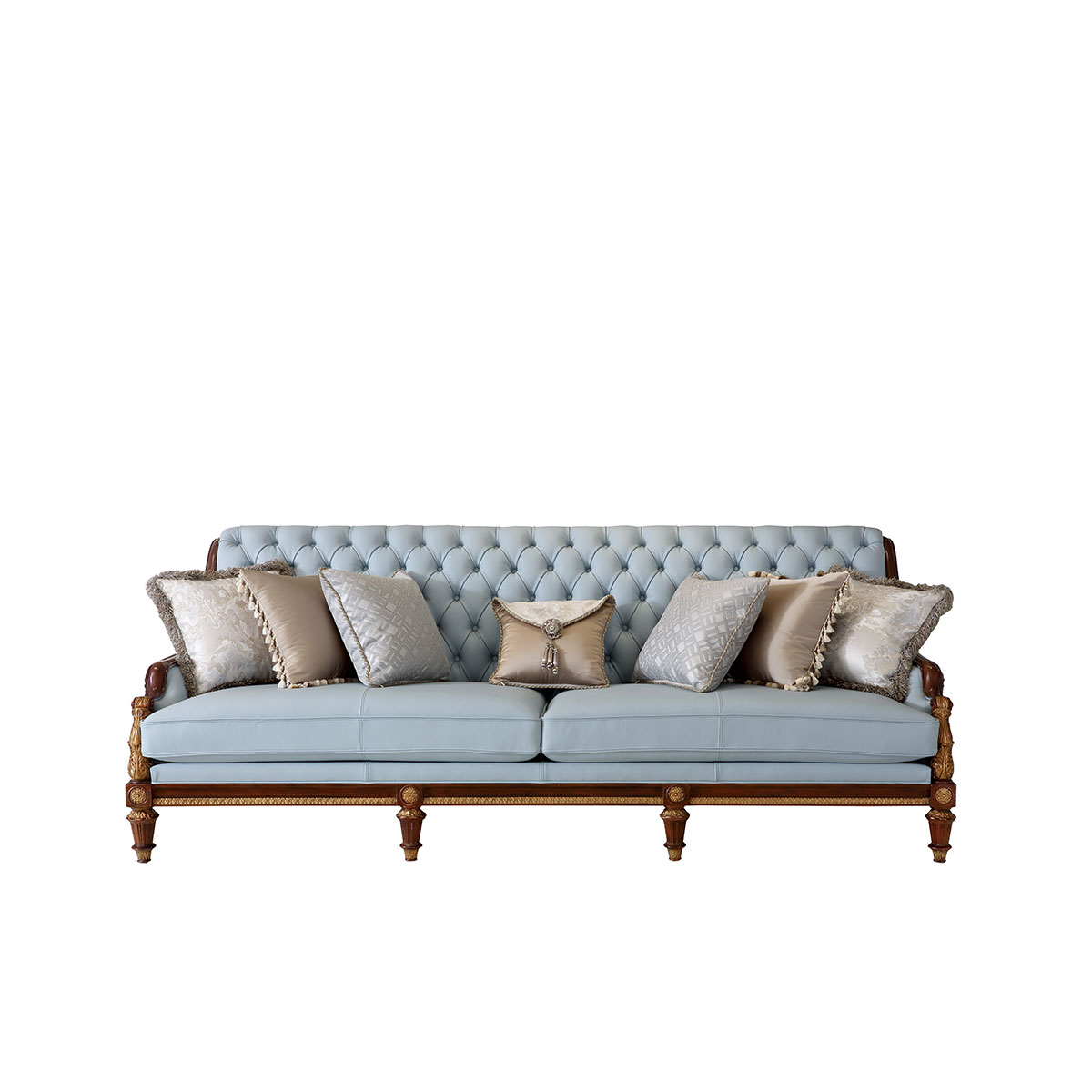 * 本款沙發(fā)可選擇四片拆裝(底座、左扶手、右扶手、后背) * 手工雕刻的工藝細節(jié) * 細致的拉扣工藝和包有豐厚的填充物坐墊; * 標配抱枕:550*550 6個 480*480 1個 * 提供多種面料可供選擇;