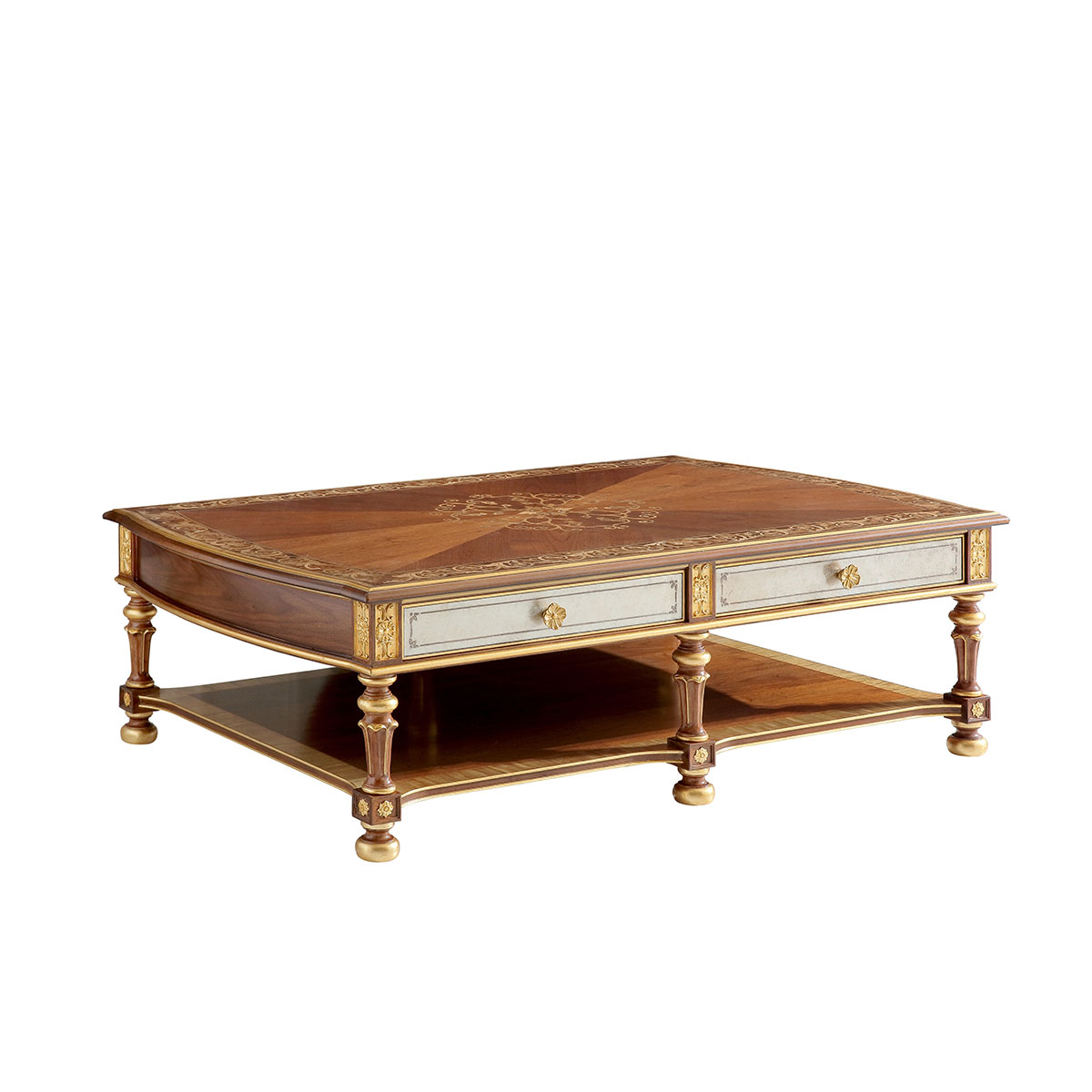橡膠木+環(huán)保人造板+黑胡桃+艷陽花+櫻桃木等木皮貼面+彩繪玻璃