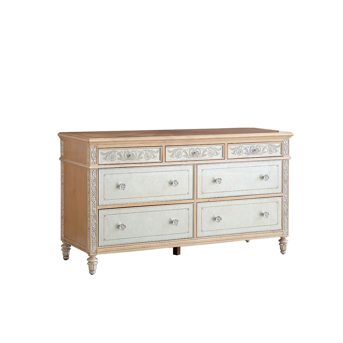 橡膠木+環(huán)保人造板+黑胡桃+艷陽(yáng)花+櫻桃木等木皮貼面+藝術(shù)玻璃