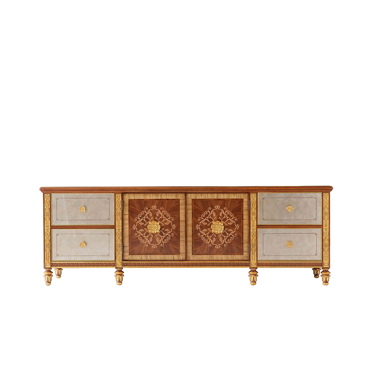 橡膠木+環(huán)保人造板+黑胡桃+艷陽花+櫻桃木等木皮貼面+藝術(shù)玻璃