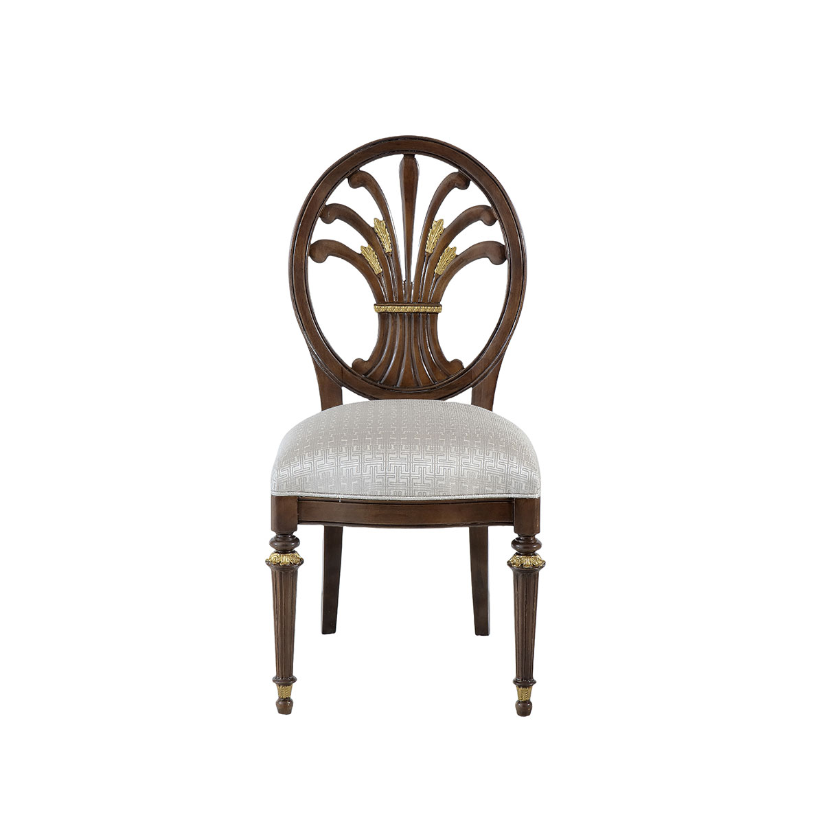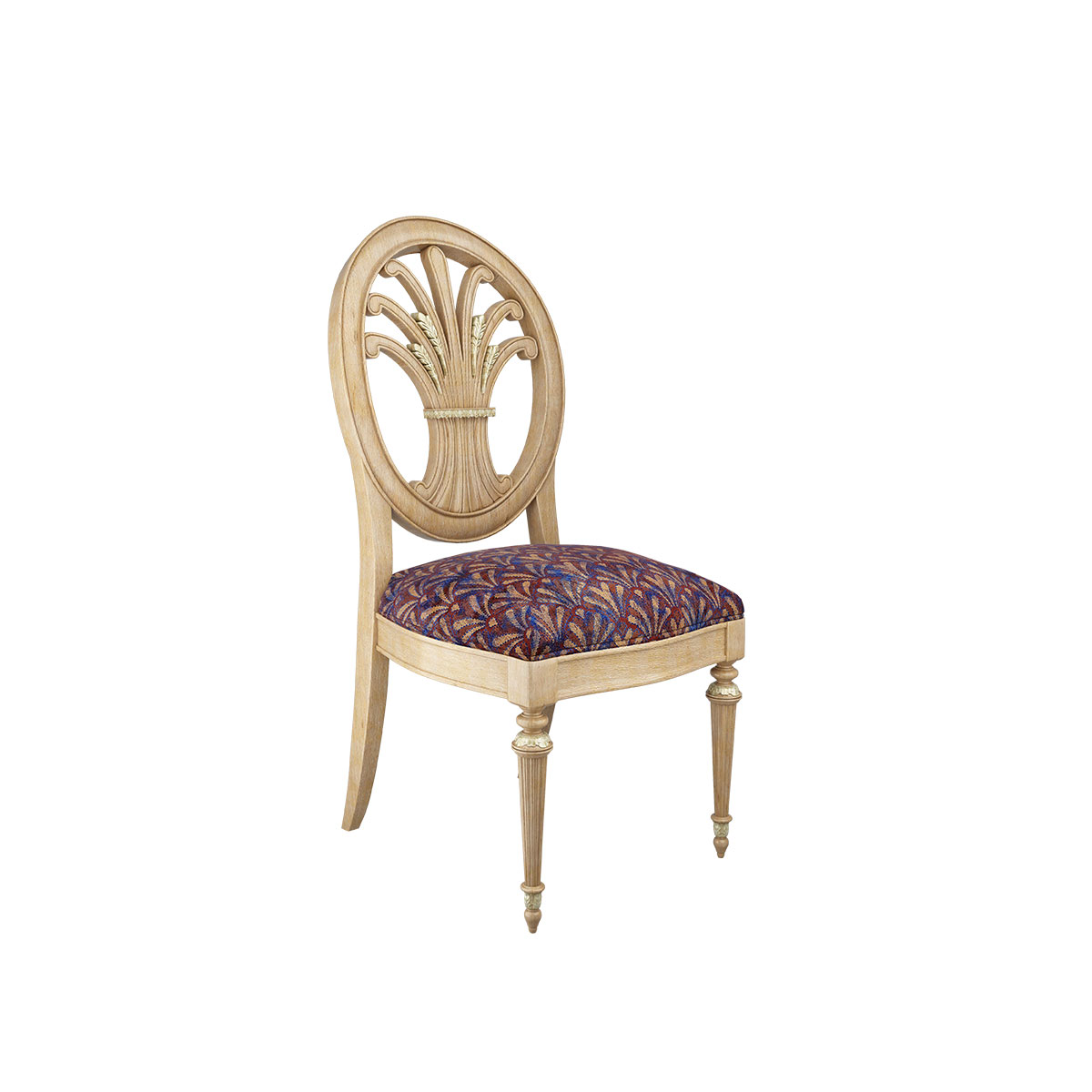 * 以意大利的宮廷家具和羅馬的古建筑為元素,使用錐形的腿腳設計、精致的手工雕刻細節和描金工藝結合,顯示王權的穩固地位;配以對稱的棕櫚葉和麥穗雕刻裝飾椅背、色彩豐富的布藝面料和厚實柔軟的填充物是豪華系列翡冷翠 意式單椅的特色。