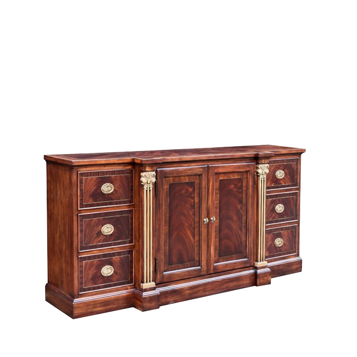 * 穩(wěn)重氣派的造型飾以建筑柱元素雕刻、細(xì)致的涂金工藝,充分表現(xiàn)了名門貴族的高雅品位,可謂是裝扮英式家居的必備潮品。