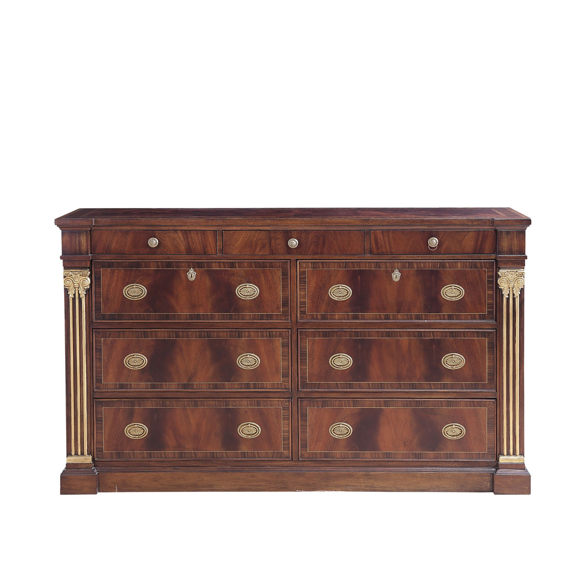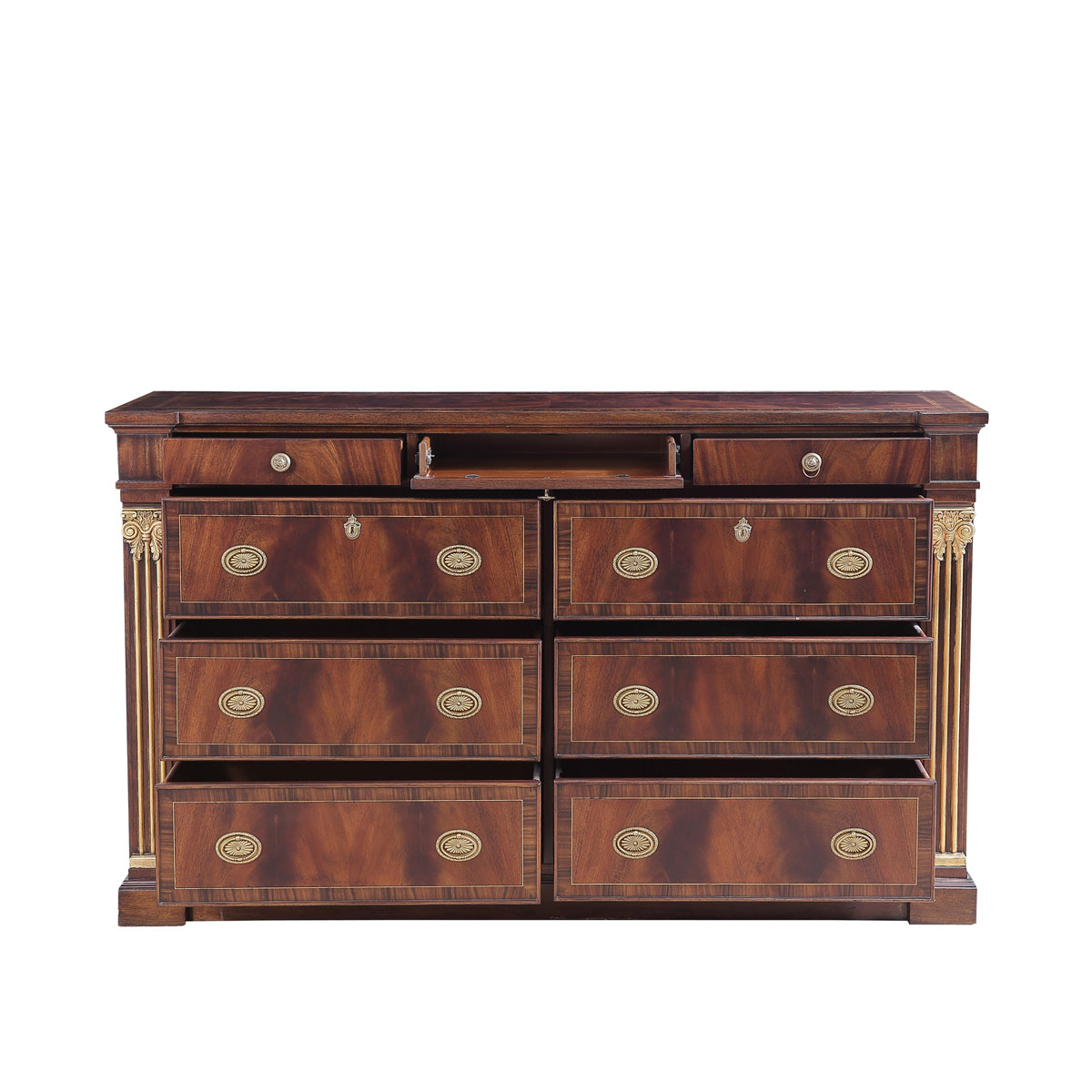 * 為表現英國皇室的華麗和莊嚴,以英國溫莎堡為設計元素。使用優雅的 Ionic Order(愛奧尼克式羅馬柱)雕刻,配上耀眼的貼金箔工藝與仿鎖孔設計,完美演繹了英式宮廷家具的奢華尊貴,可謂是極具典藏價值的傳世之作。.