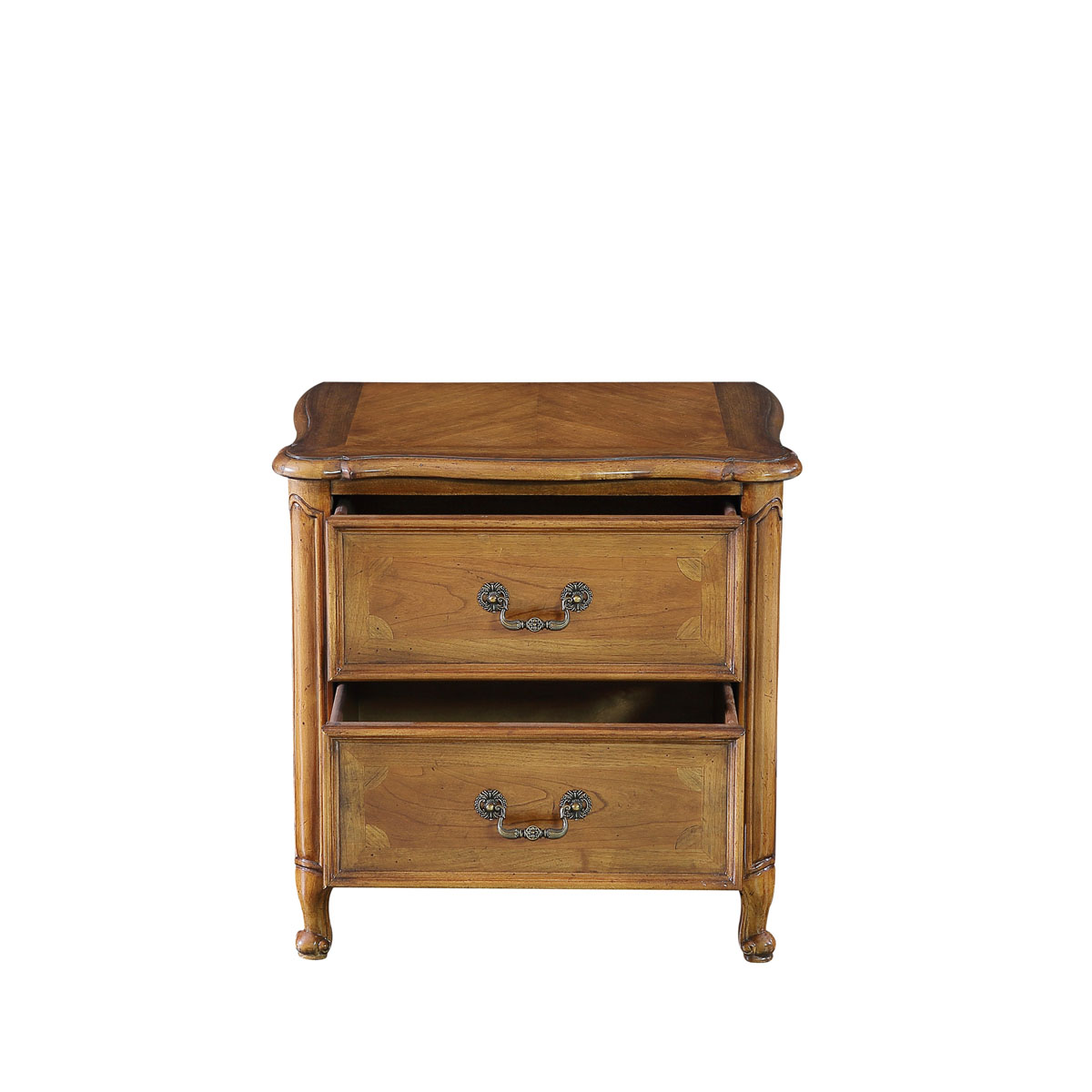 * 手工拼花藤蔓效果,用多種上等木皮拼制而成 * 二個(gè)儲(chǔ)物斗,底部采用經(jīng)典的硬木實(shí)木滑軌; * 腳腳底部裝有可調(diào)腳釘;