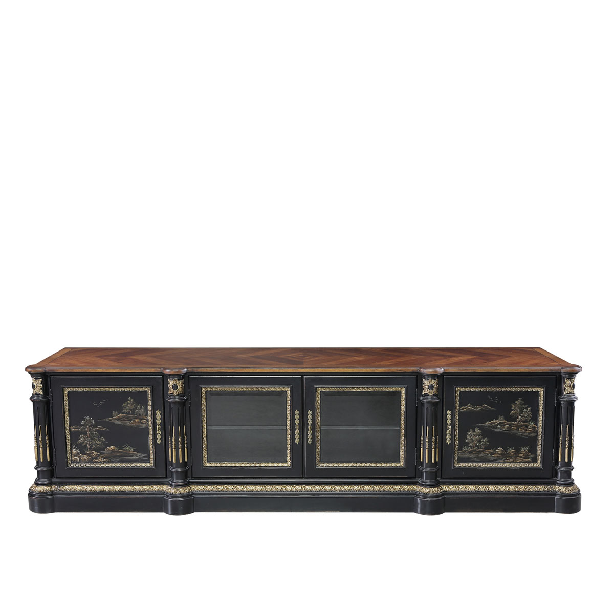 * 為表現法國路易時期的莊嚴和浪漫,以法國凡爾賽宮為設計元素。使用歌頌路易十四時期的太陽花雕刻,配以建筑柱雕刻與鉆石圖案實木薄片拼貼工藝,完美演繹了法式宮廷家具的奢華尊貴。
