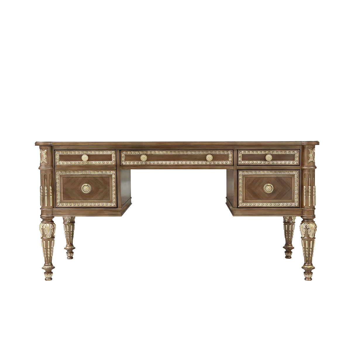 為表現法國路易時期的莊嚴和浪漫,以法國凡爾賽宮為設計元素。使用歌頌路易十四時期的太陽花雕刻;路易十六時期的建筑柱雕刻;顯示其王權穩固地位的錐形腿腳設計、古銅色的球形把手和貼金工藝,完美演繹了法式宮廷家具的奢華尊貴。