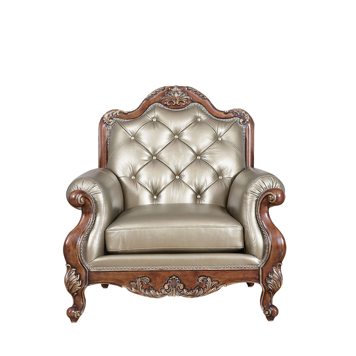 * 以法國杜樂麗花園中的植物元素為設計靈感,結合巴洛克風格,成為雕刻的主題圖案,如藤蔓和阿坎瑟斯卷葉。再加以優(yōu)美Camelback(駱駝背)的線條、彎腳和包有豐厚的填充物坐墊和靠背。