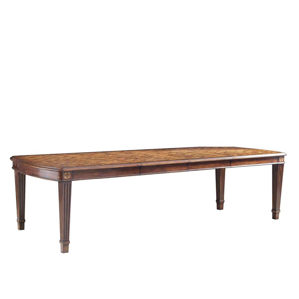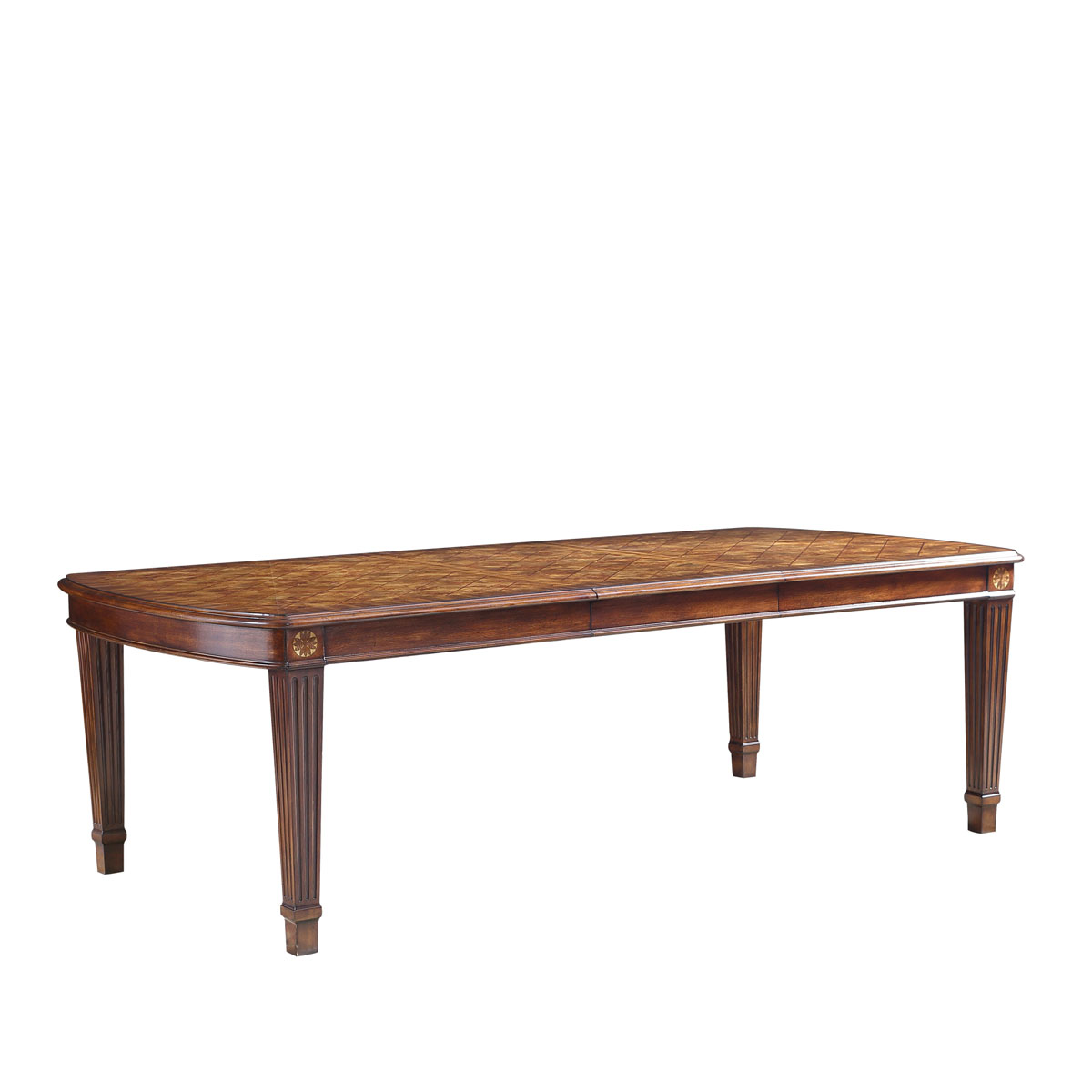 * 采用了喬治王朝后期流行的上粗下細帶槽紋方形腿,結合略帶弧度的線條與雅致的木皮貼面,將英式家具在新古典時期的芳容身姿展露無遺。