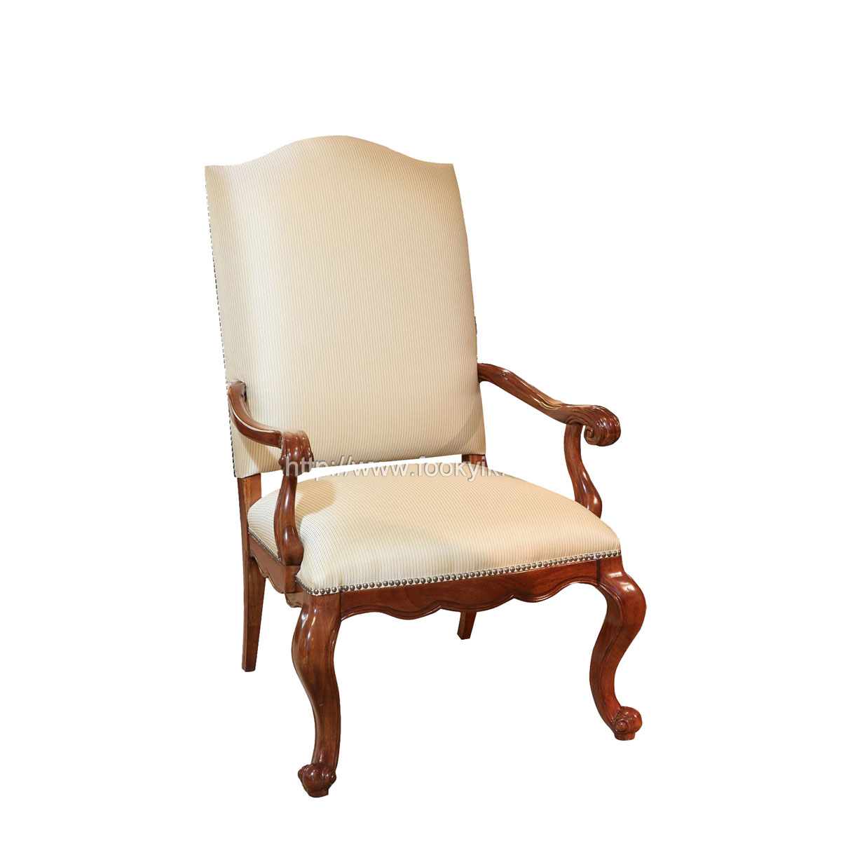 * 一款集合法式元素包括Camelback Silhouette(駝峰輪廓)造型、旋渦形扶手和S形彎腳的高背休閑椅,并配上觸感舒適的布藝和包有豐厚的填充物坐墊和靠背;