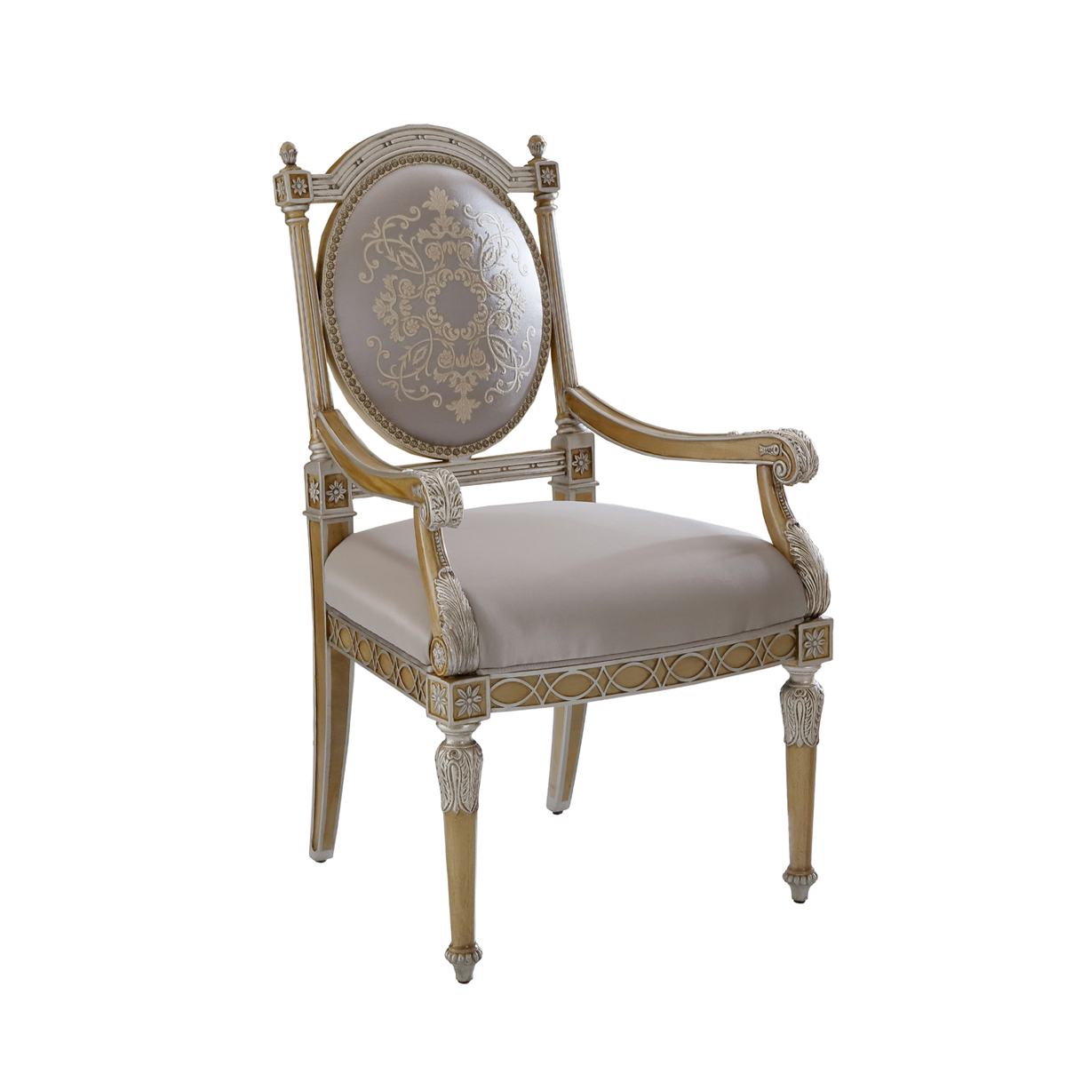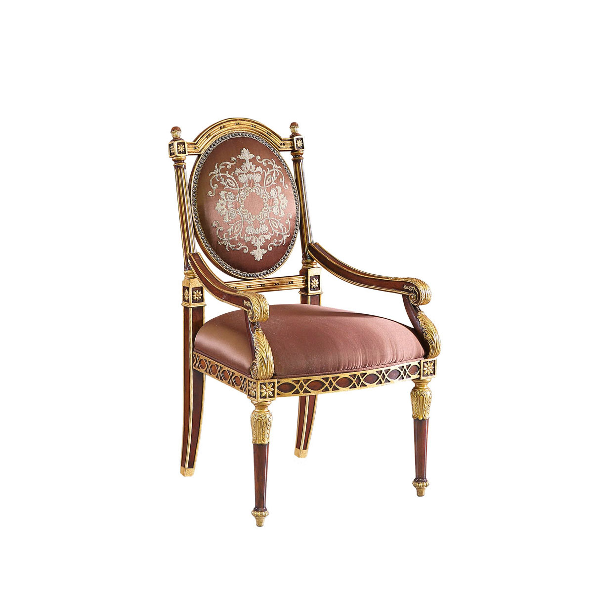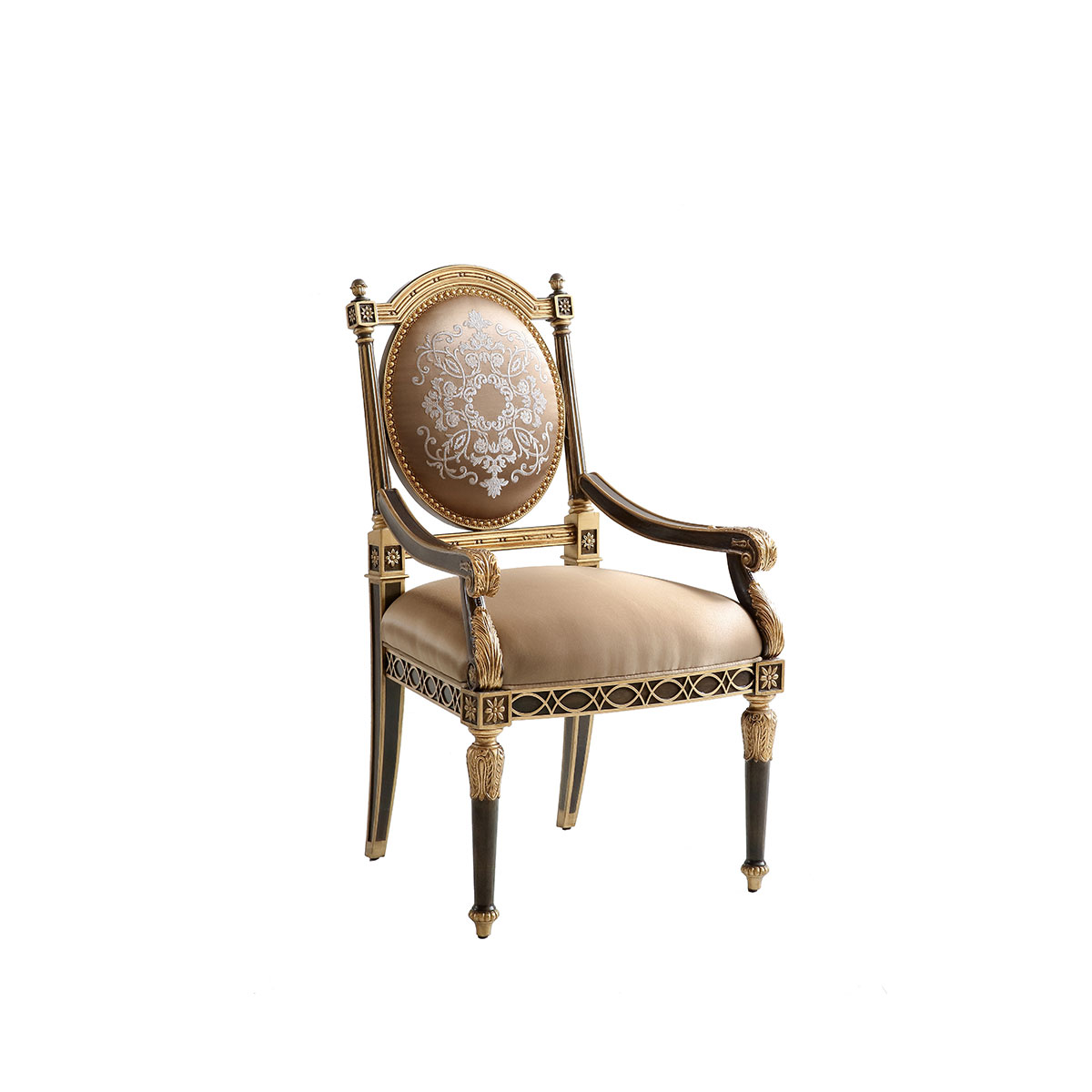 * 流暢的線條塑造優雅造型,皇室家具御用的桃花心木彰顯傳世價值,結合花形刺繡和金箔裝飾的卷葉雕刻,怒放貴族家居生活美學的璀璨奢華;