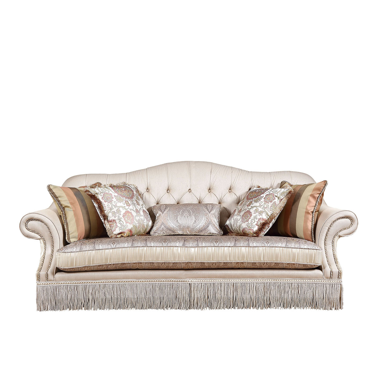 * 獨特的拉扣工藝,線條優美的坐墊和裙腳的流蘚設計,獨特的抱枕配搭和包有豐厚的填充物坐墊和靠背。這款沙發表現了法國人獨有的浪漫和對舒適的追求。