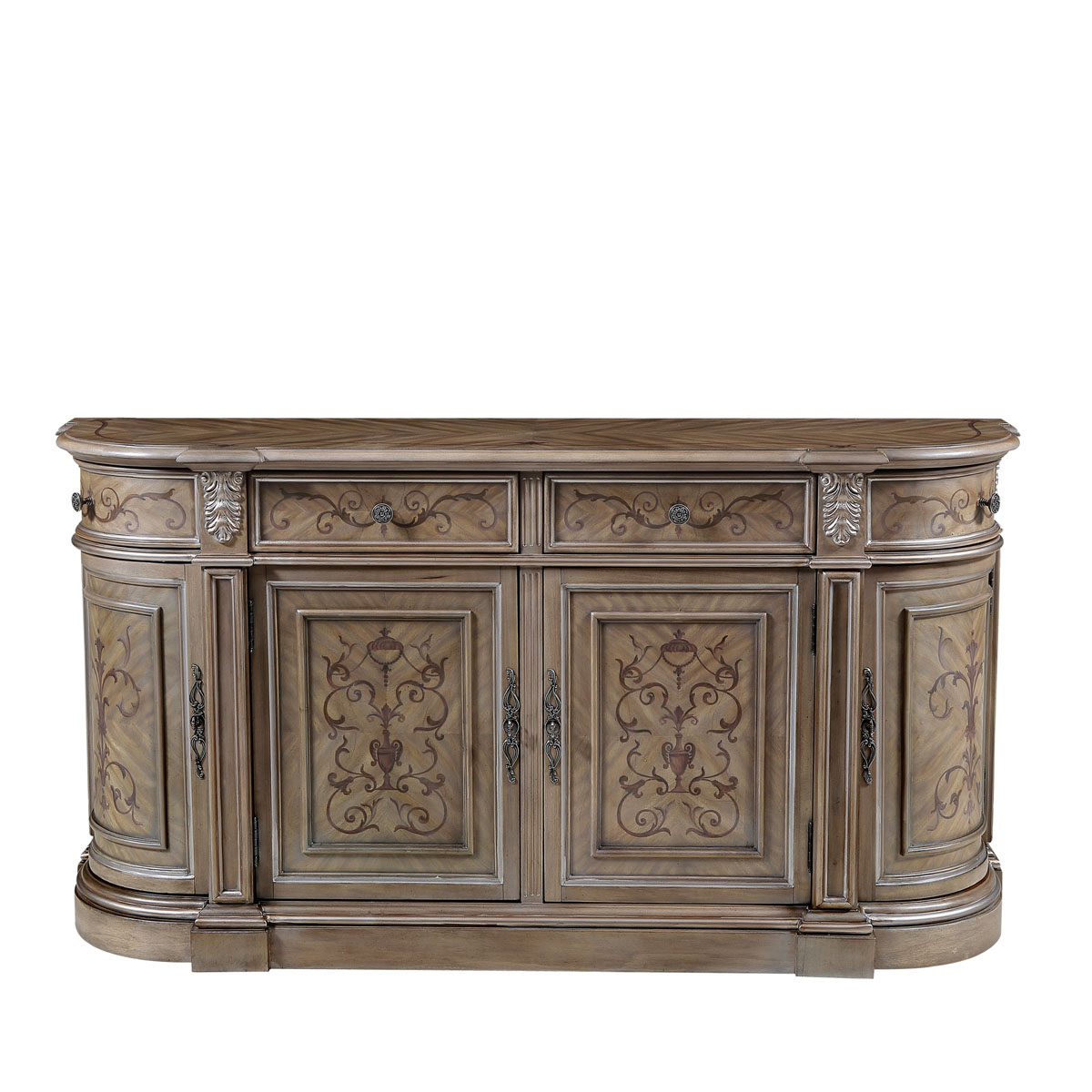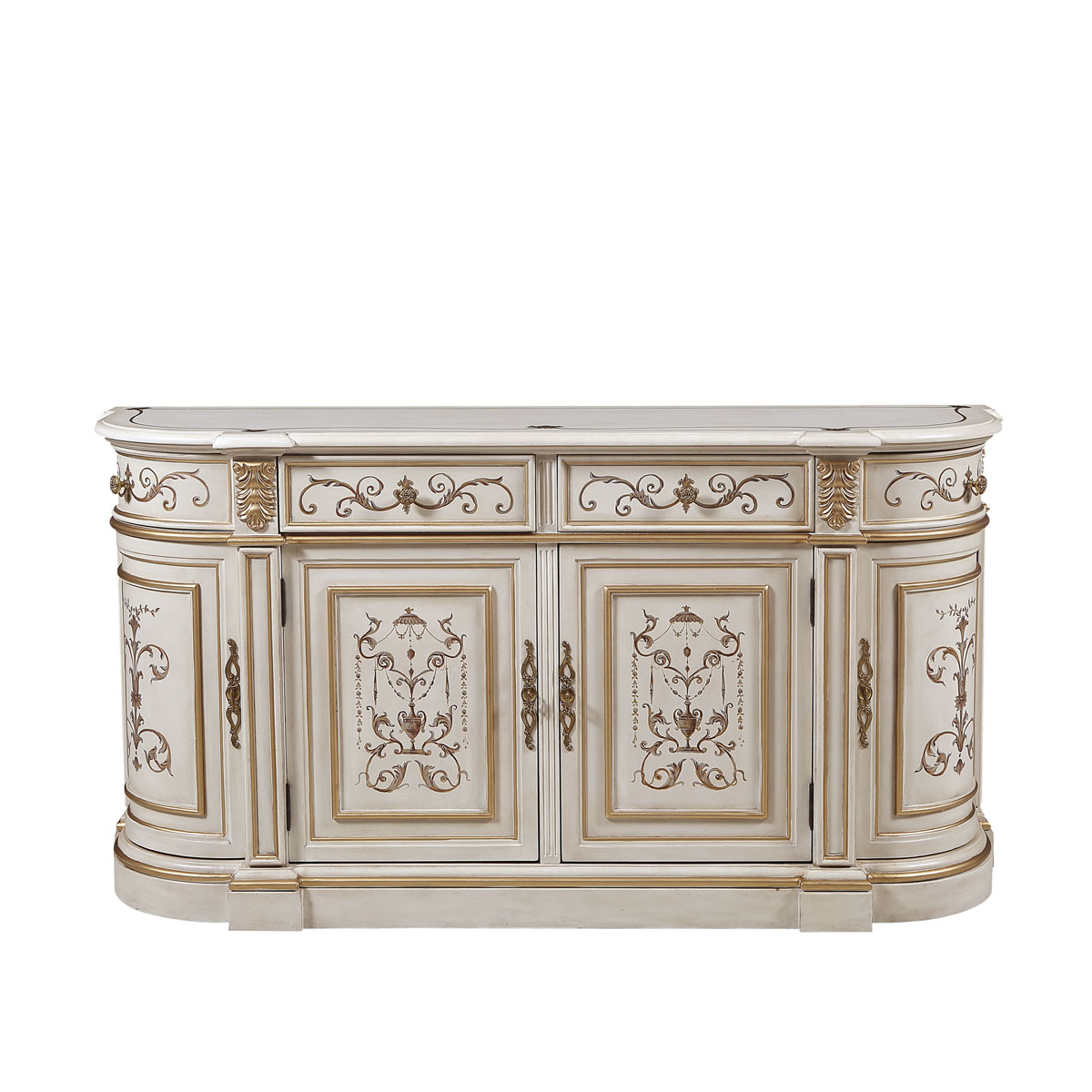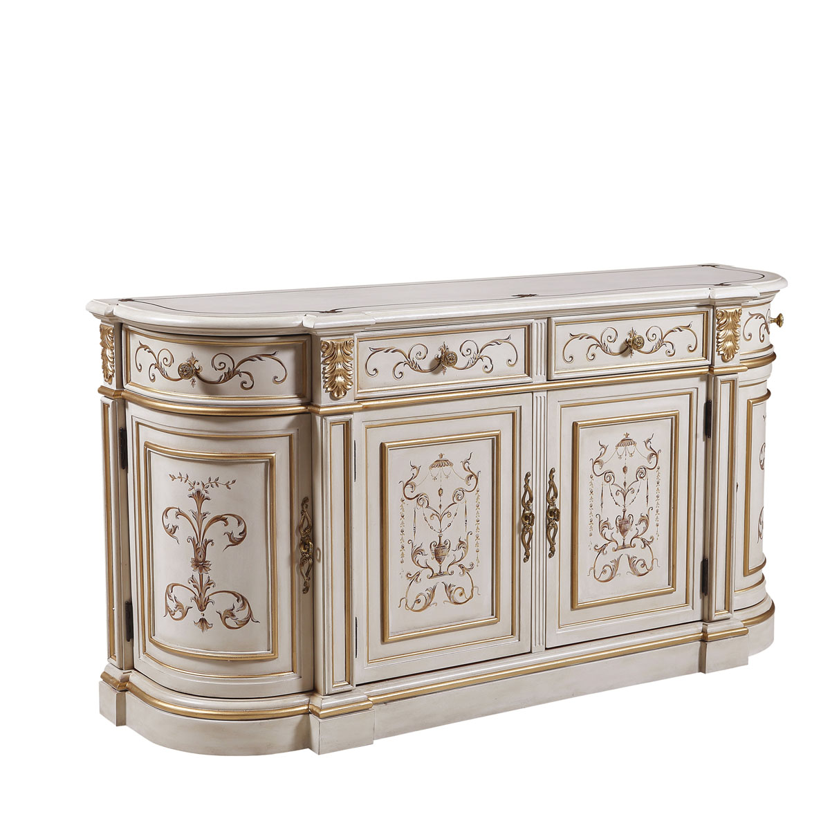 * 以意大利美麗而古老的城市維羅納為設(shè)計靈感,采用了多款手繪圖案,如寓意平安如意的花瓶裝飾、有“淑女之淚”雅稱的鈴蘭、傘形及珠寶裝飾、清新動人的花草等,配以帶仿古效果的色澤痕跡和閃耀的貼金箔工藝,來表現(xiàn)出藝術(shù)家具獨(dú)特的氣質(zhì)和內(nèi)涵,精彩演繹了意大利人對奢華絢麗的寵愛。
