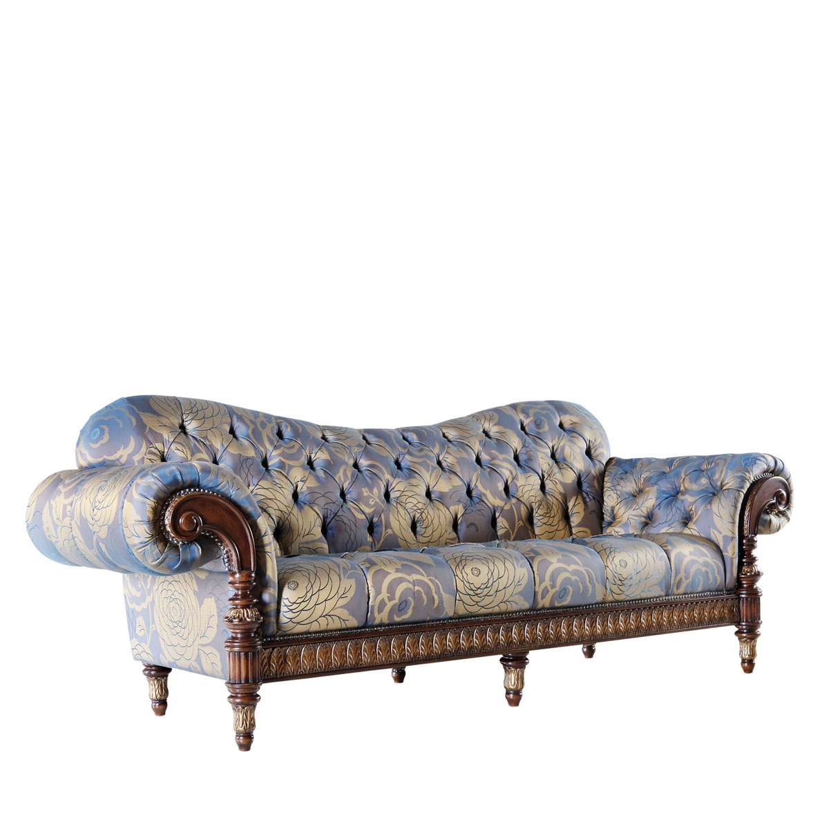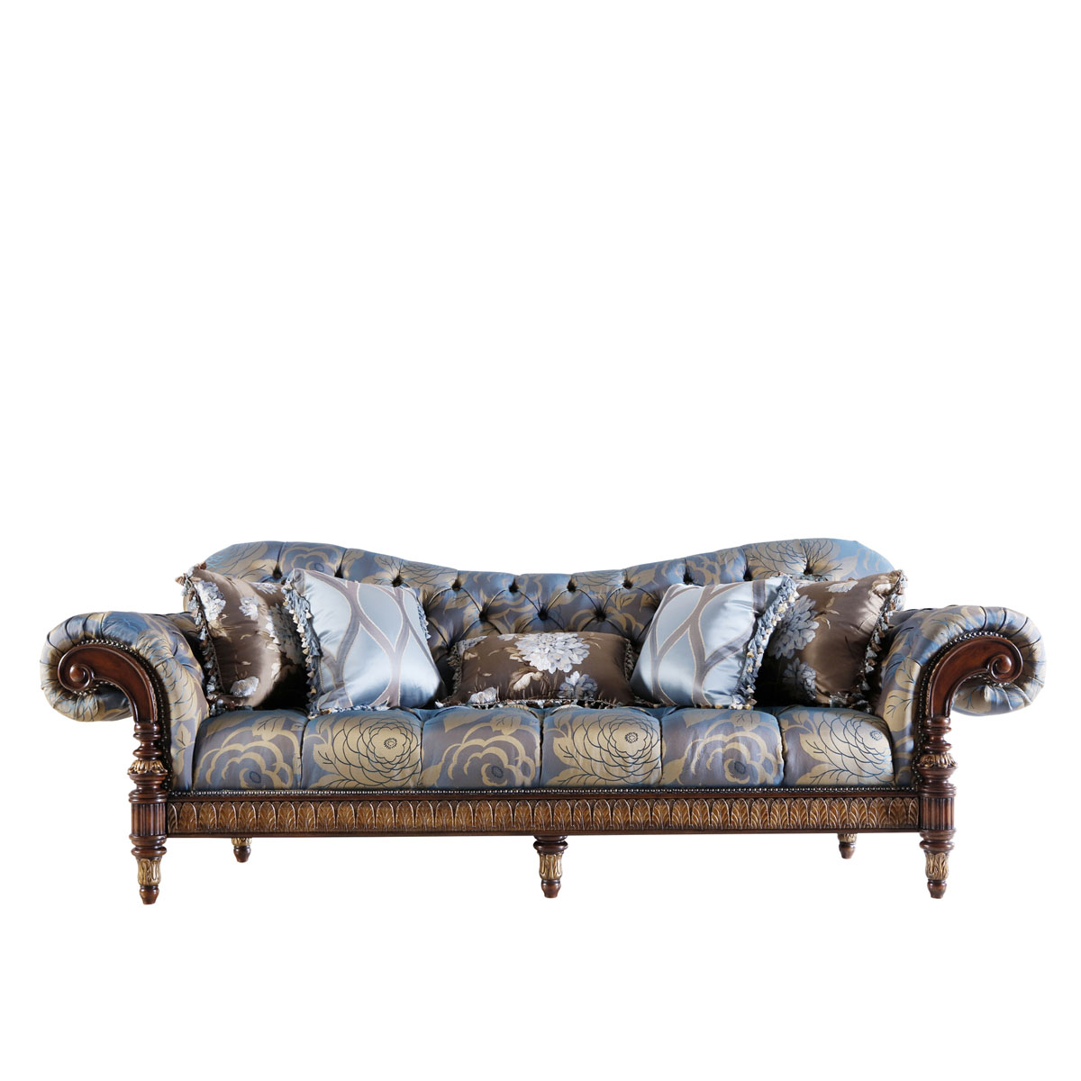 翡冷翠Ethan-伊桑三人位沙發(fā)高低起伏的翼型靠背,向外括卷的卷軸扶手打造出獨(dú)特的沙發(fā)造型,給人優(yōu)雅高貴的氣質(zhì)。用進(jìn)口的雙層真絲面料配上精致的拉扣,手感舒適,擁入其中有溫暖懷抱之感;大朵大朵的玫瑰花印花渲染更突出雍容華貴之態(tài)。