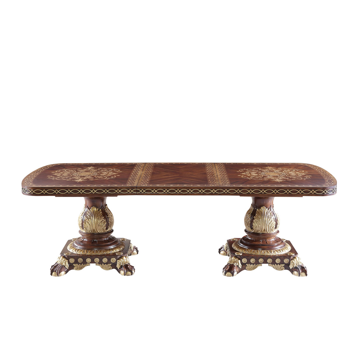 * 使用珍貴的材料拼貼而成的玫瑰花環、S形渦卷花紋和莨苕葉等裝飾,配以齊彭代爾式Chippendale獸抓球腳凸顯英國王室威儀,而金箔裝飾的卷葉雕刻怒放璀璨奢華,精心設計的小尺寸滿足所有戶型對貴族生活的鐘愛。
