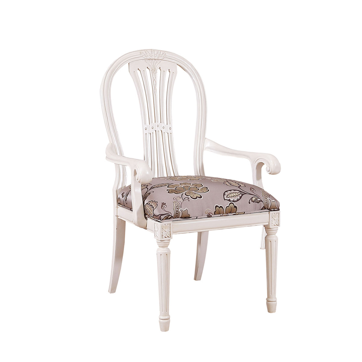 * 使用普羅旺斯著名的熏衣草造型為意念而成的椅背,;素雅的白色,營造出年代久遠的歷史感, 蘊含著讓人無法抗拒的古典風范。