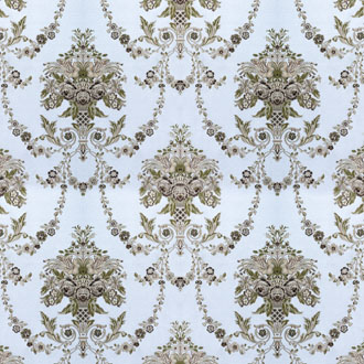 天空遠處那片淺藍與眼前的Tiffany藍交相輝映,高精密的繡花布藝,淡雅流光。